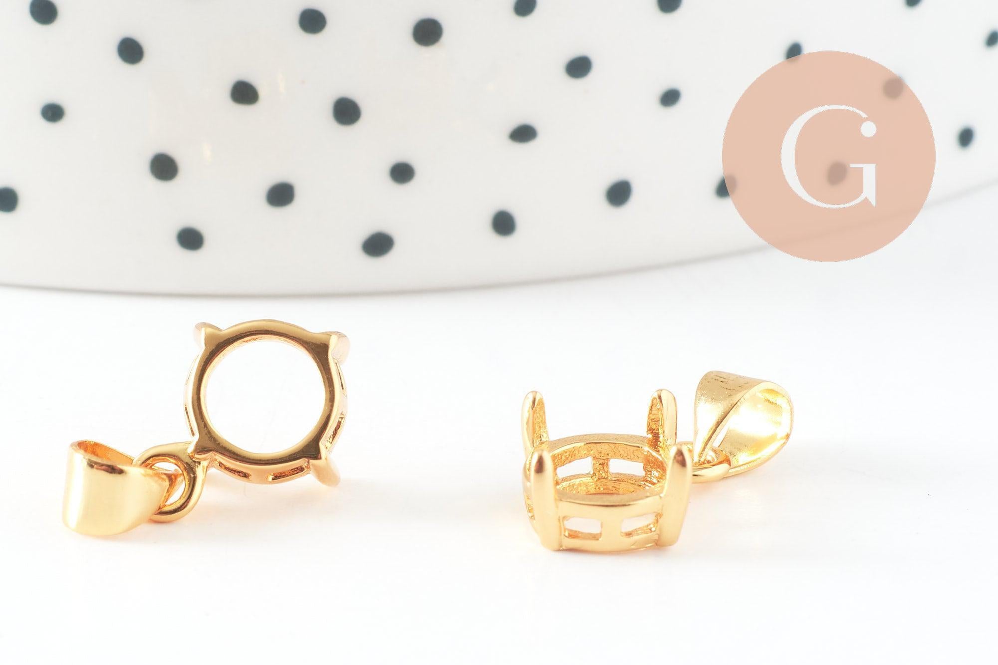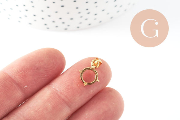 Pendentif support cabochon rond à griffes 8mm laiton doré, x1 (G10050)