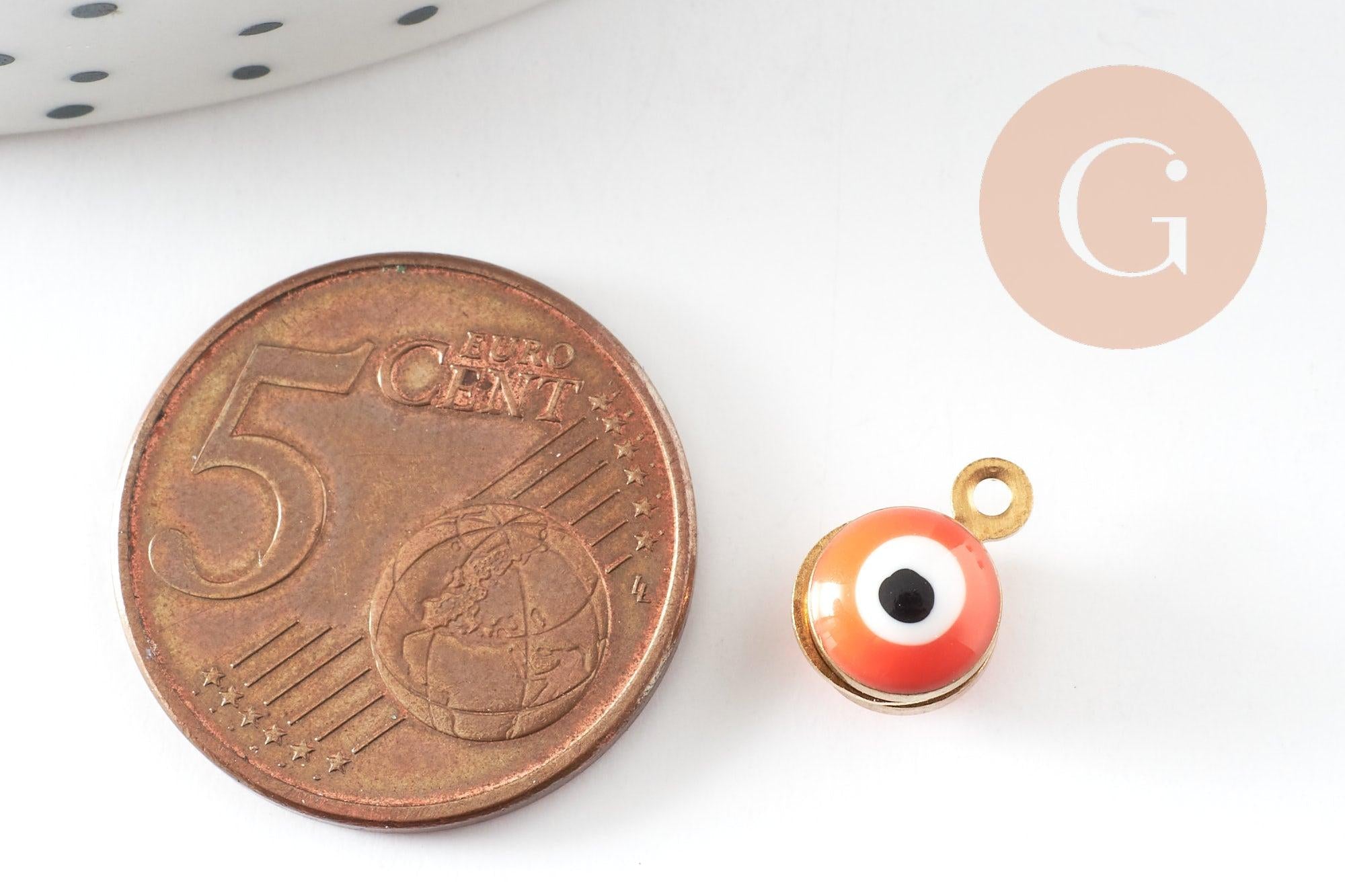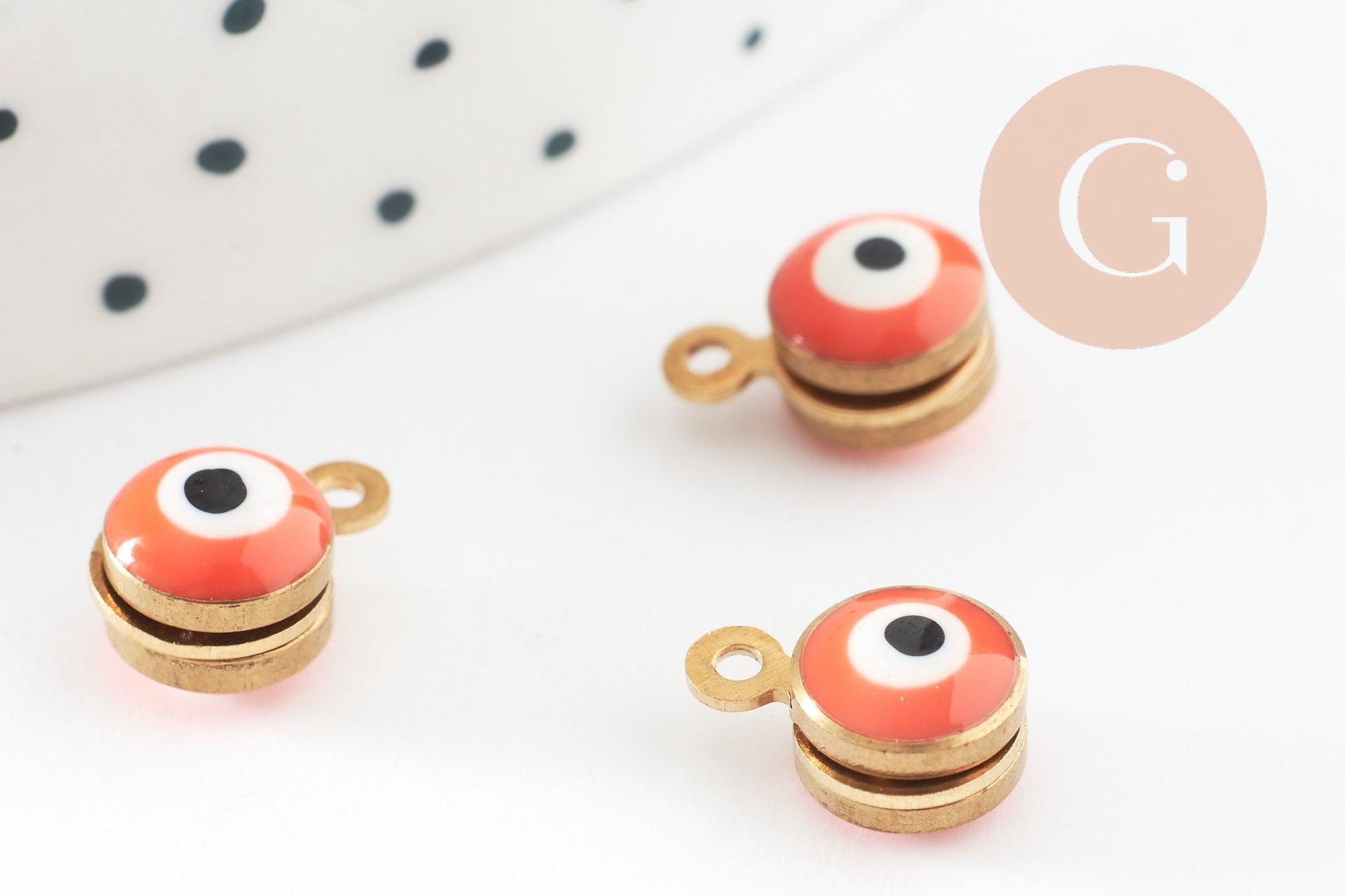 Golden orange enamel pendants, evil eye, golden brass, lucky pendant, jewelry creation, 10mm, lot of 10