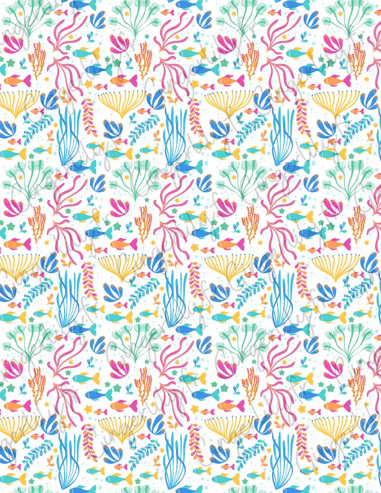 • Pattern: multicolored fish, corals and algae (tropical ocean)