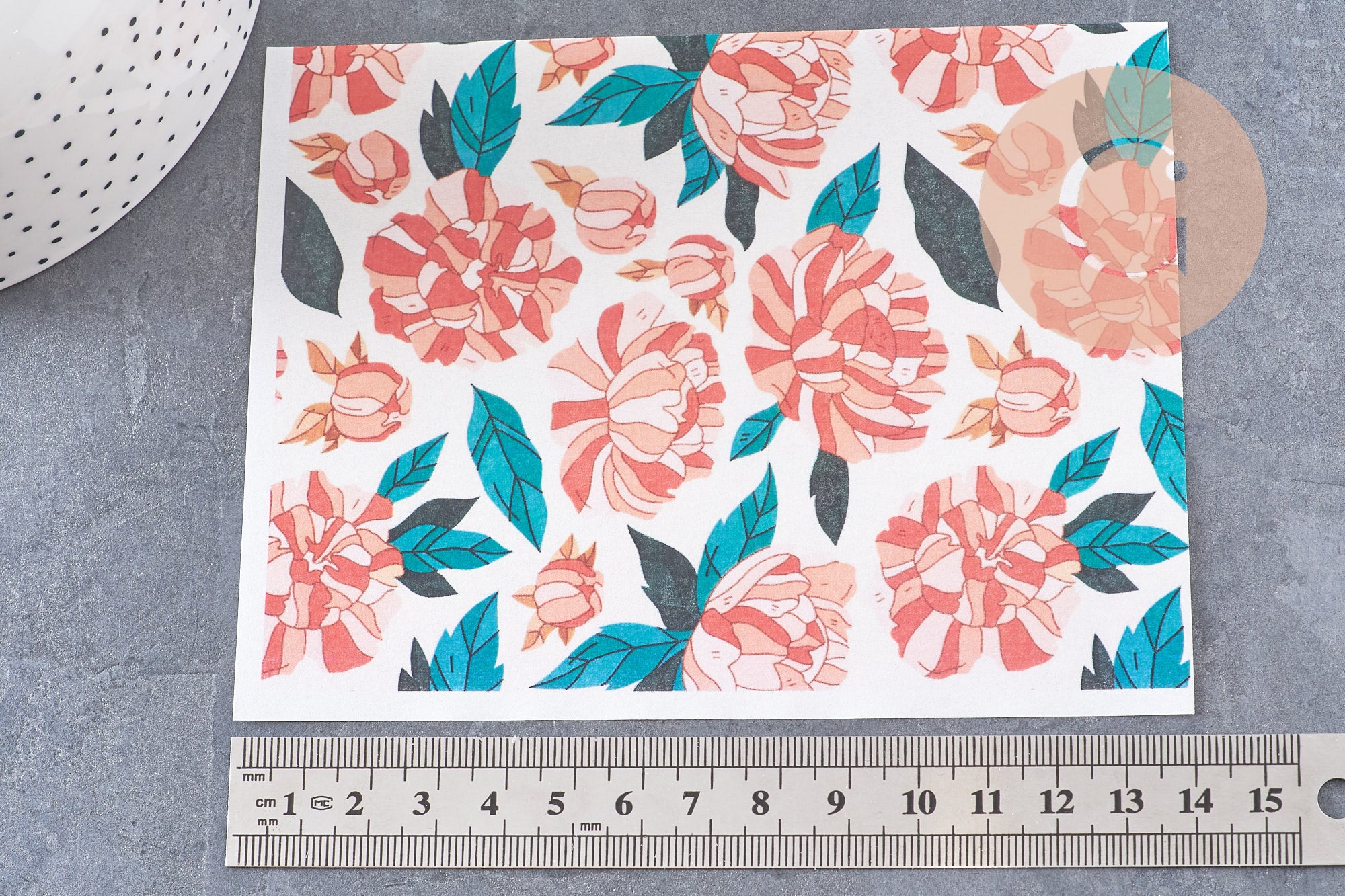 💗 Apply the transfer to a white or pale paste to reveal the intensity of the stylized flowers.