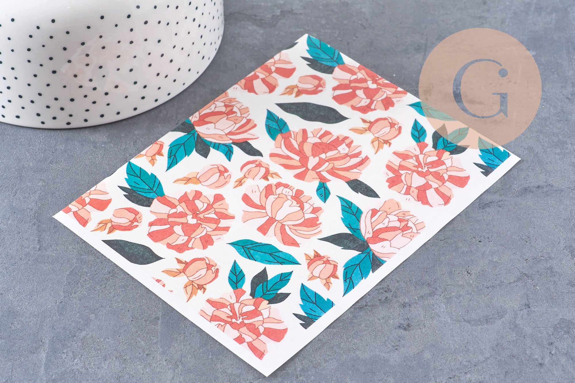Polymer Transfer Sheet – Stylized Peonies 14x10 cm, x1 (G10763)