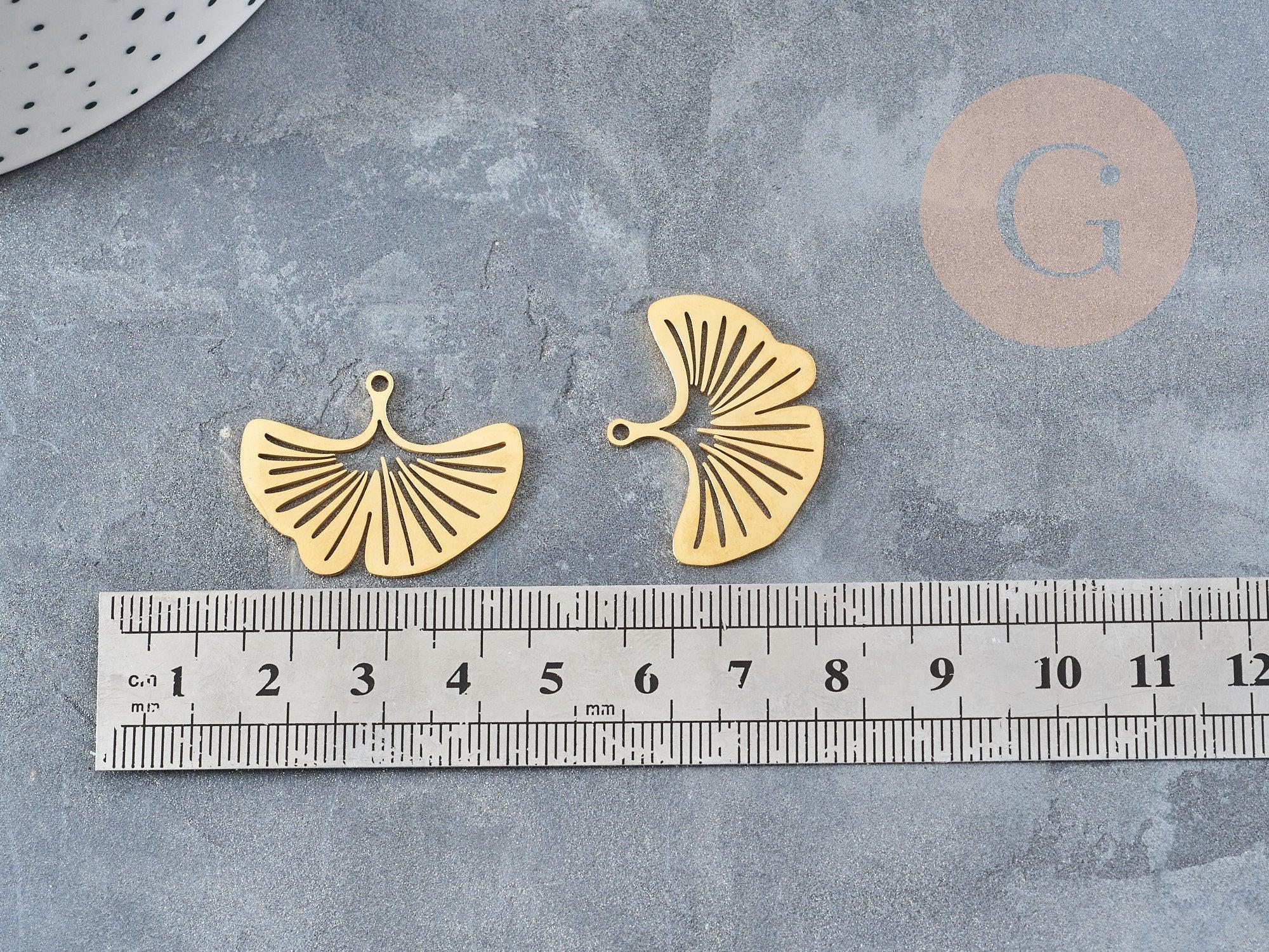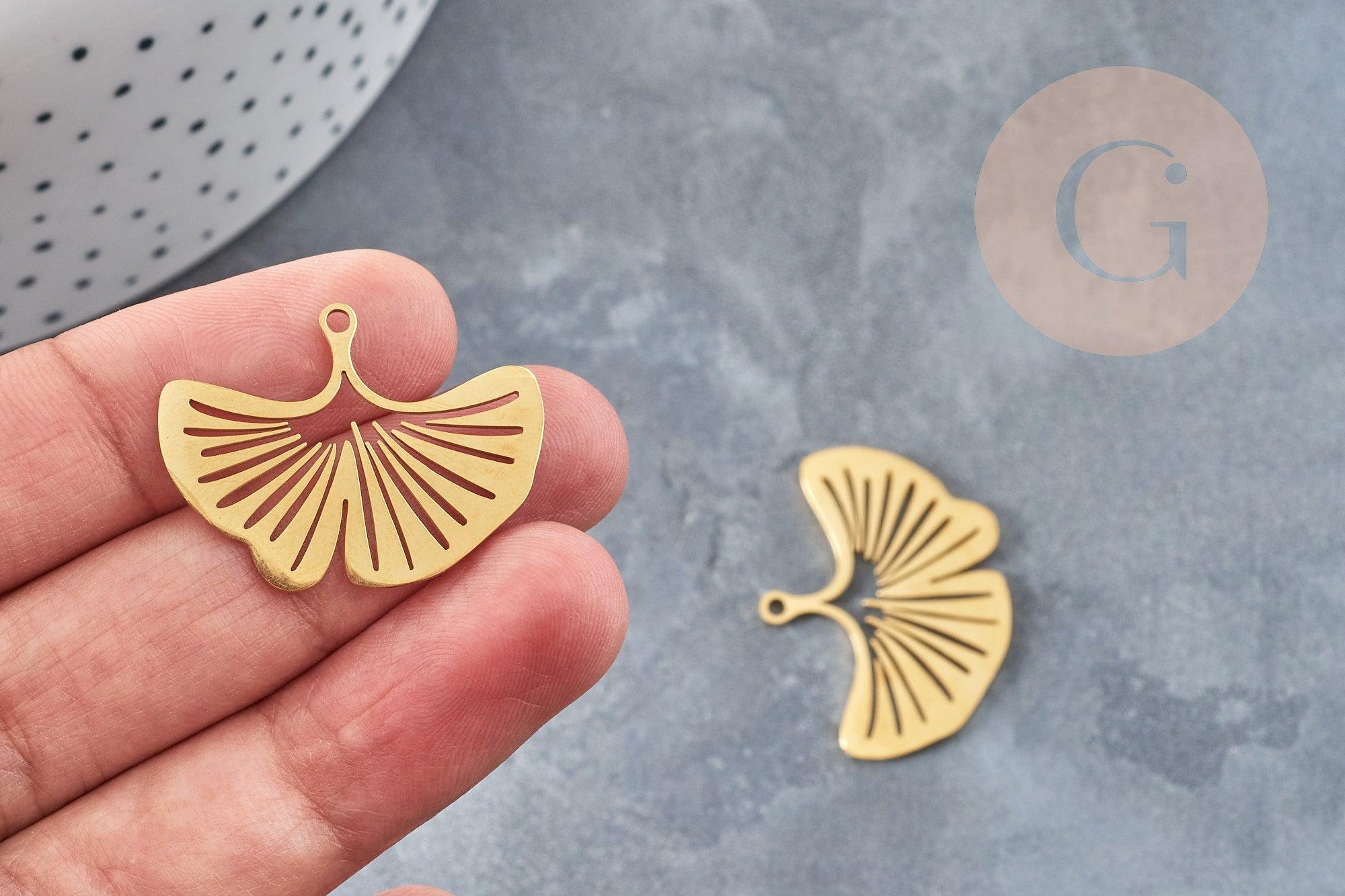A gold-plated steel pendant in the shape of a gingko leaf, an ideal supply for making your DIY costume jewelry