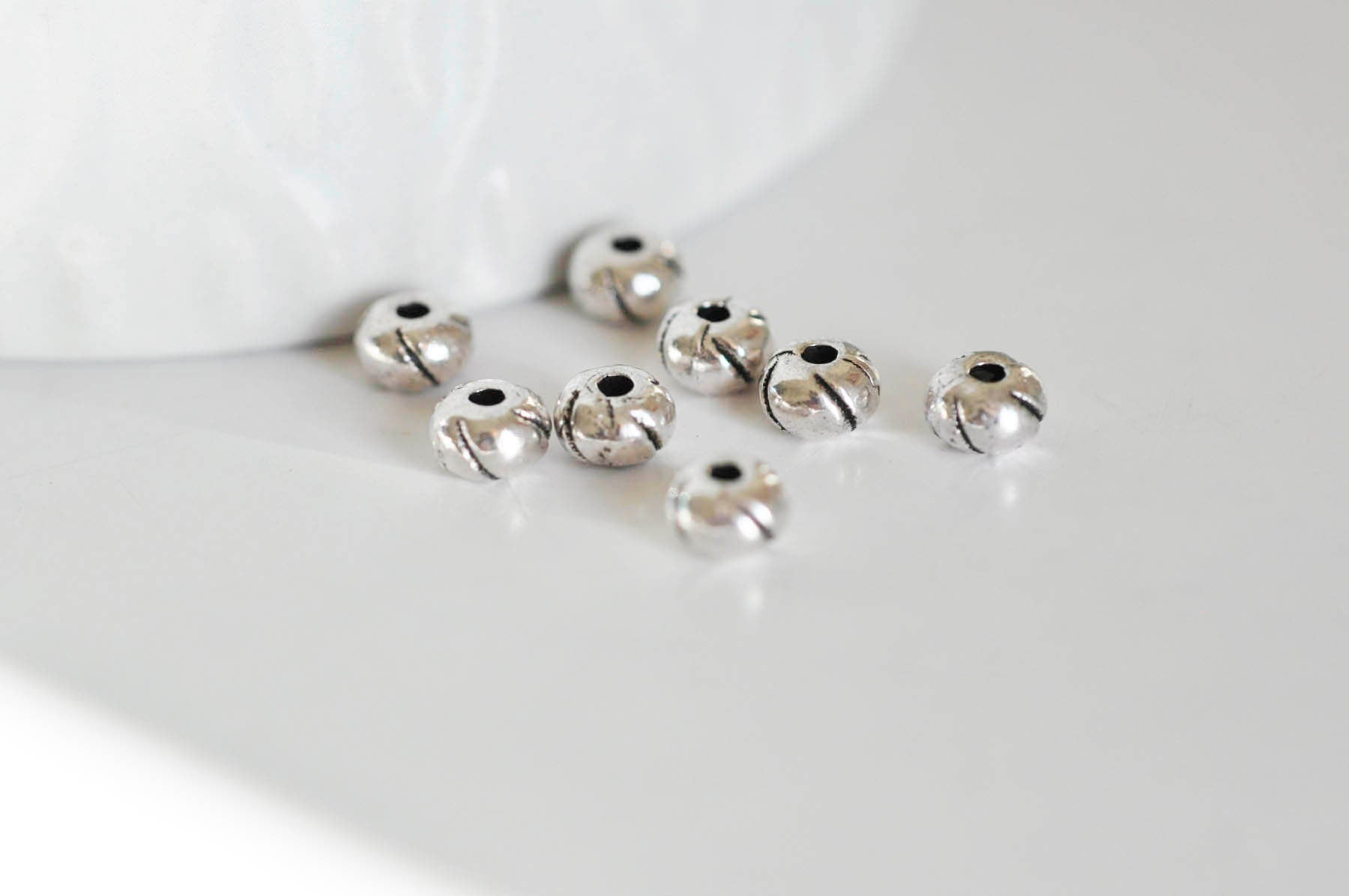 Engraved silver spacer round bead, creative supplies, silver beads, jewelry creation, washers, spacer beads s,lot of 10,5.5mm A set of 10 round Tibetan silver beads with an engraved pattern, to create beautiful, creative jewelry. Diameter 5.5mm Thickness: 3.5mm hole: 1.5mm...