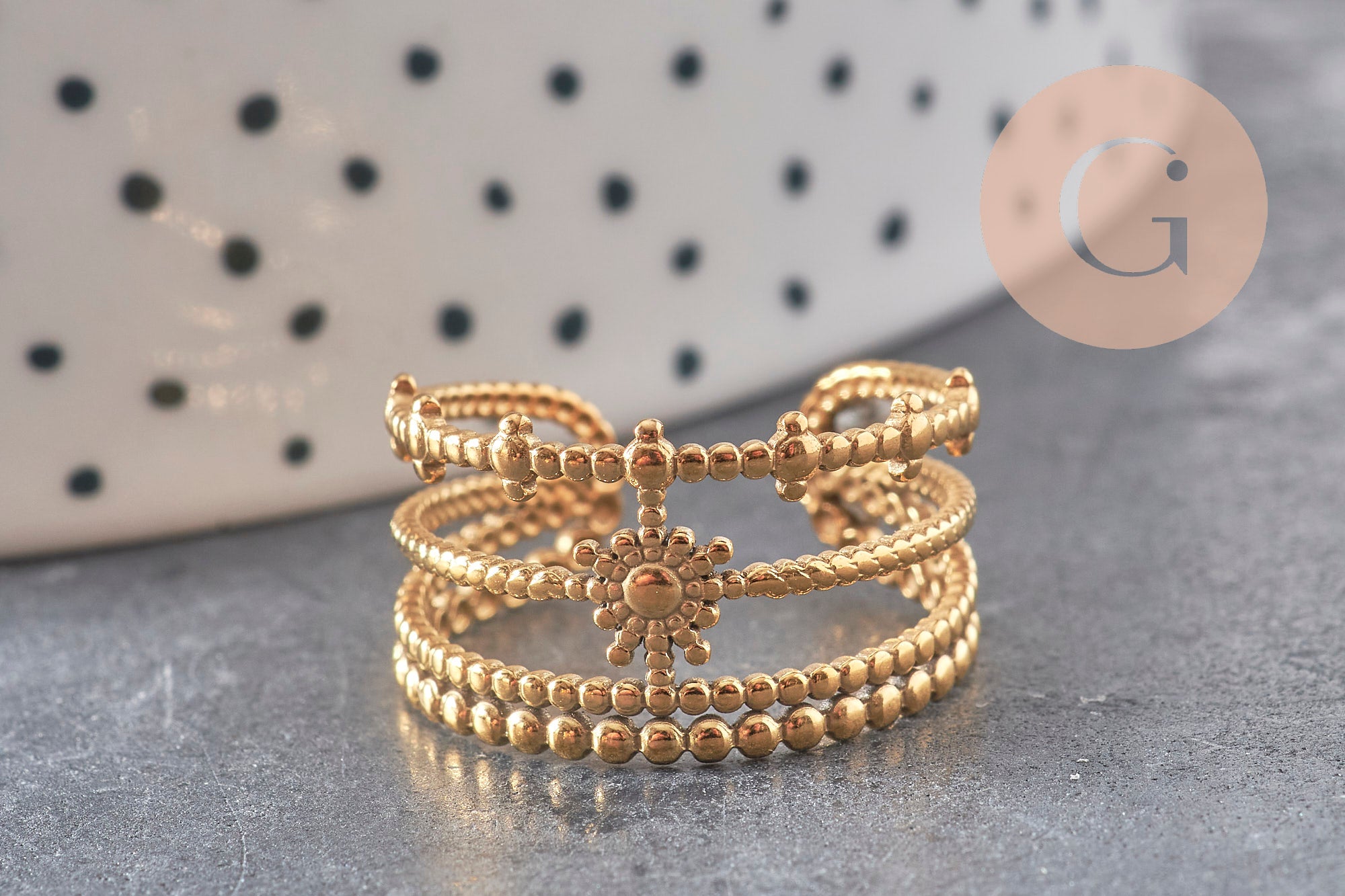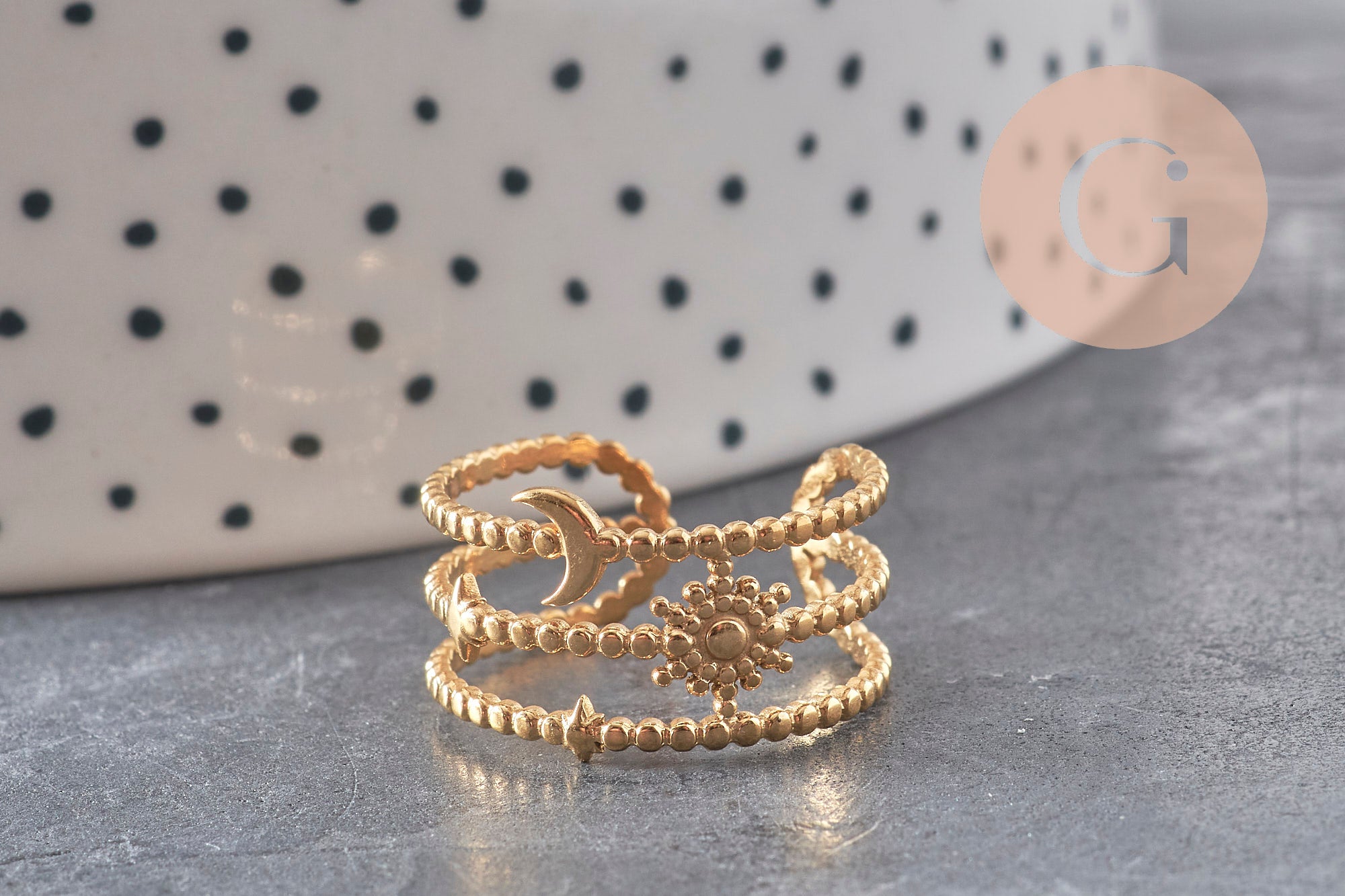 Fall for this elegant gold-plated stainless steel star ring , made up of three thin welded rings and decorated with a central star. Refined and delicate, it will add a touch of sparkle to all your outfits, whether day or evening.