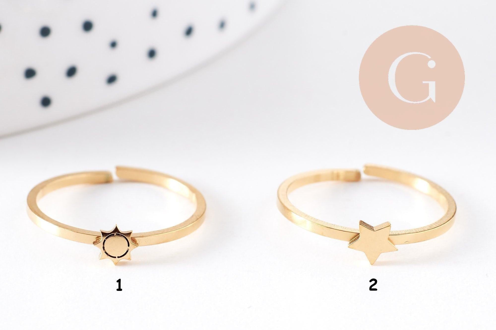 Fall for this adjustable gold-plated stainless steel ring , decorated with a sun or star motif depending on the model. Thin and luminous, it will bring a mystical and solar touch to your creations or your outfit, while remaining comfortable and easy to wear every day.