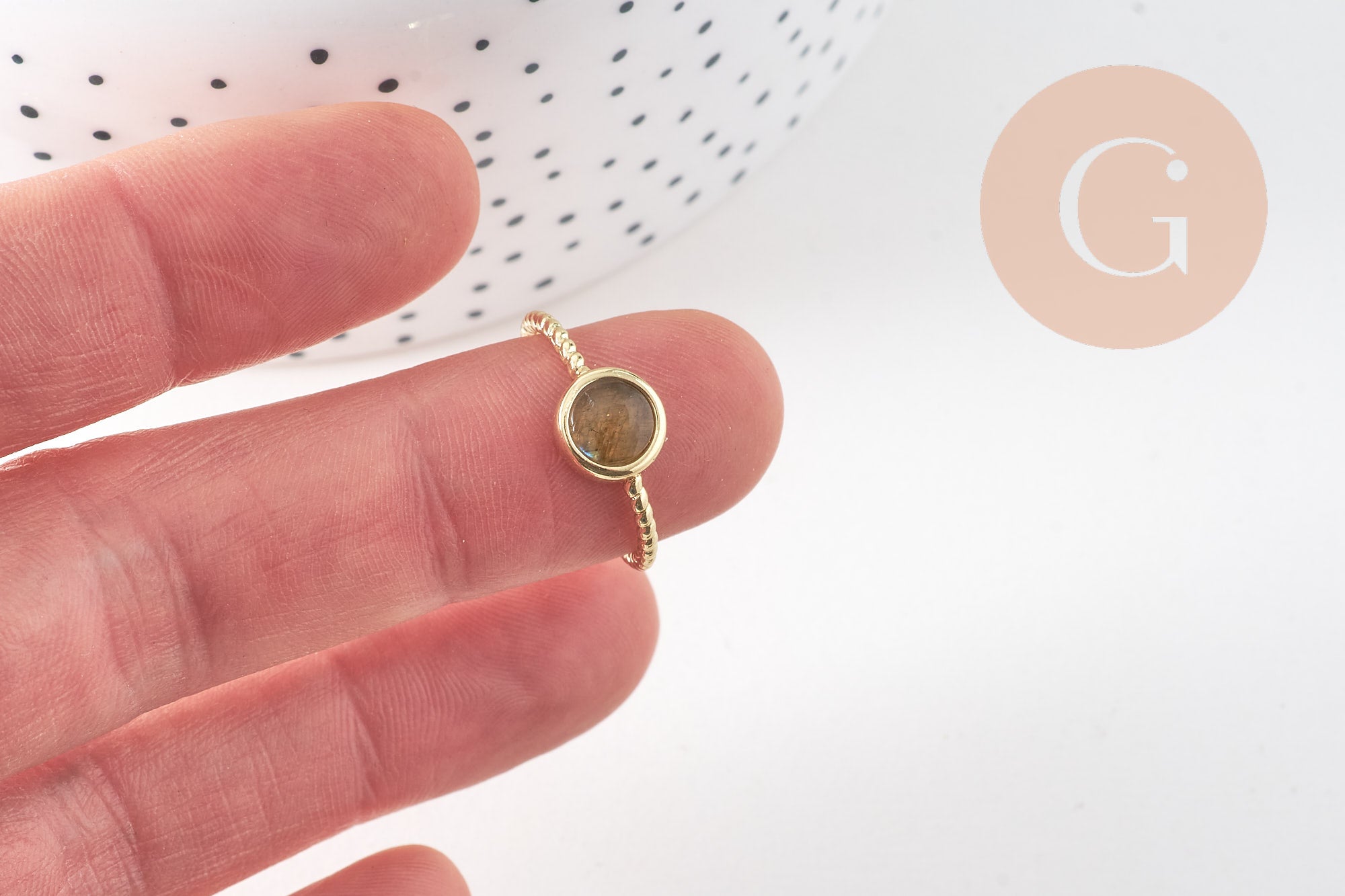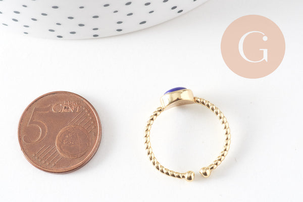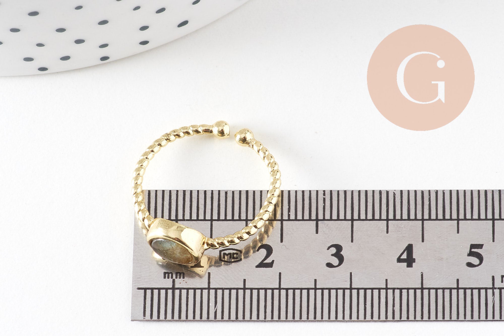 adjustable twisted ring with gold-plated brass cabochon natural stone, fine ring to offer, gift jewelry to offer, 20mm, unit