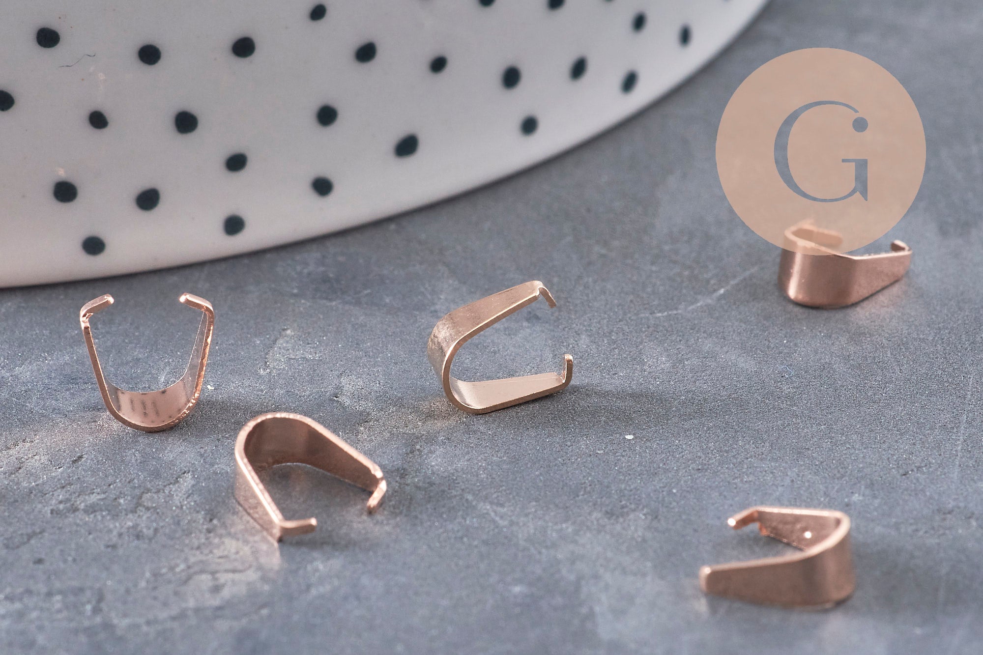 Add an elegant and modern touch to your creations with these rose gold IP 304 stainless steel bails , ideal for quickly attaching a pendant to a chain or cord. Their soft and luminous rose gold finish adds a contemporary feel to your jewelry. Easy to clip on thanks to their closure system, they are perfect for quick, clean, and durable installations.