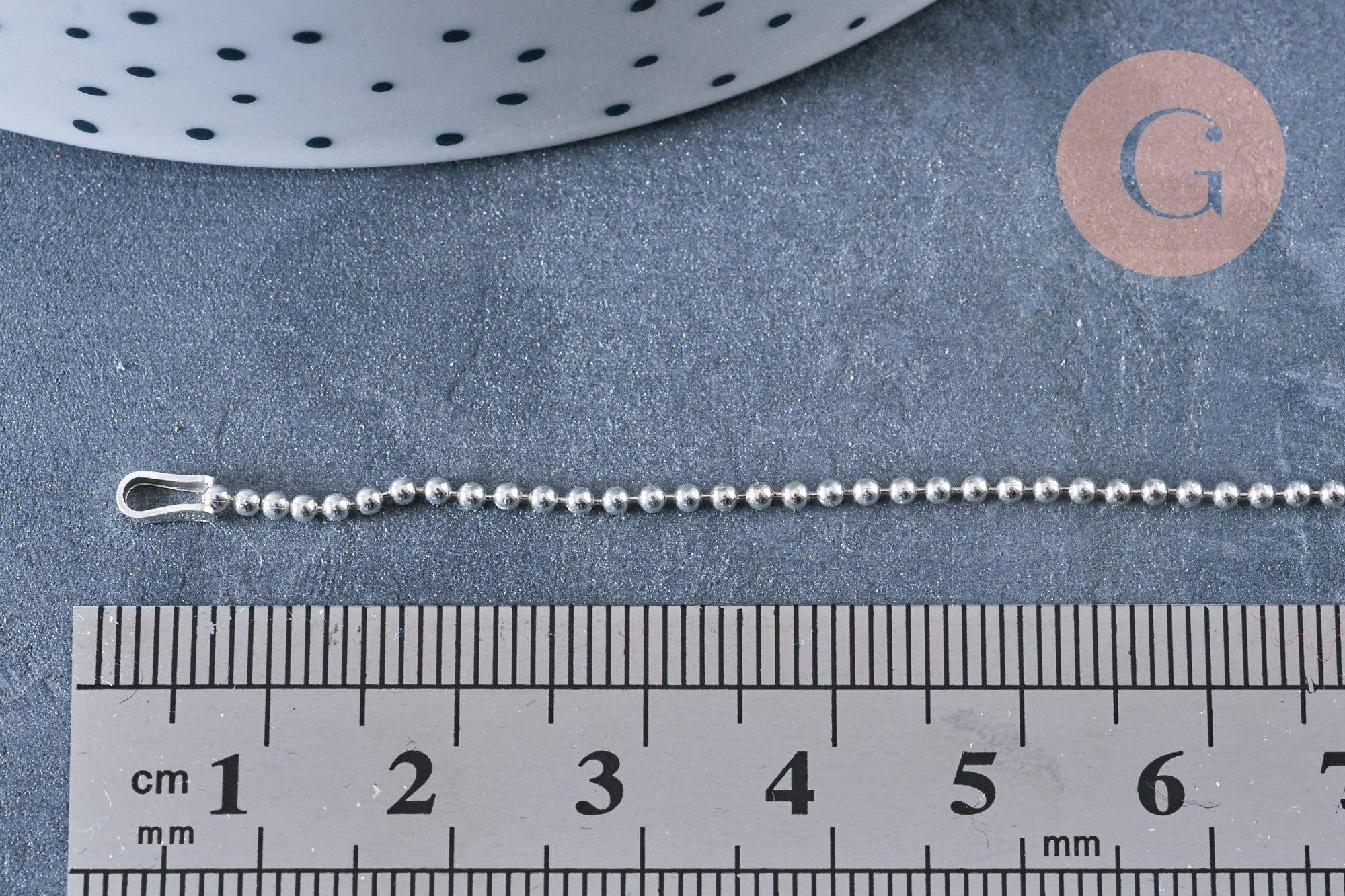 EP Bracelet chaine de cheville boule très fine argent 925 massif 22.8cm, chaine en argent pour création bijoux, x1 G8228
