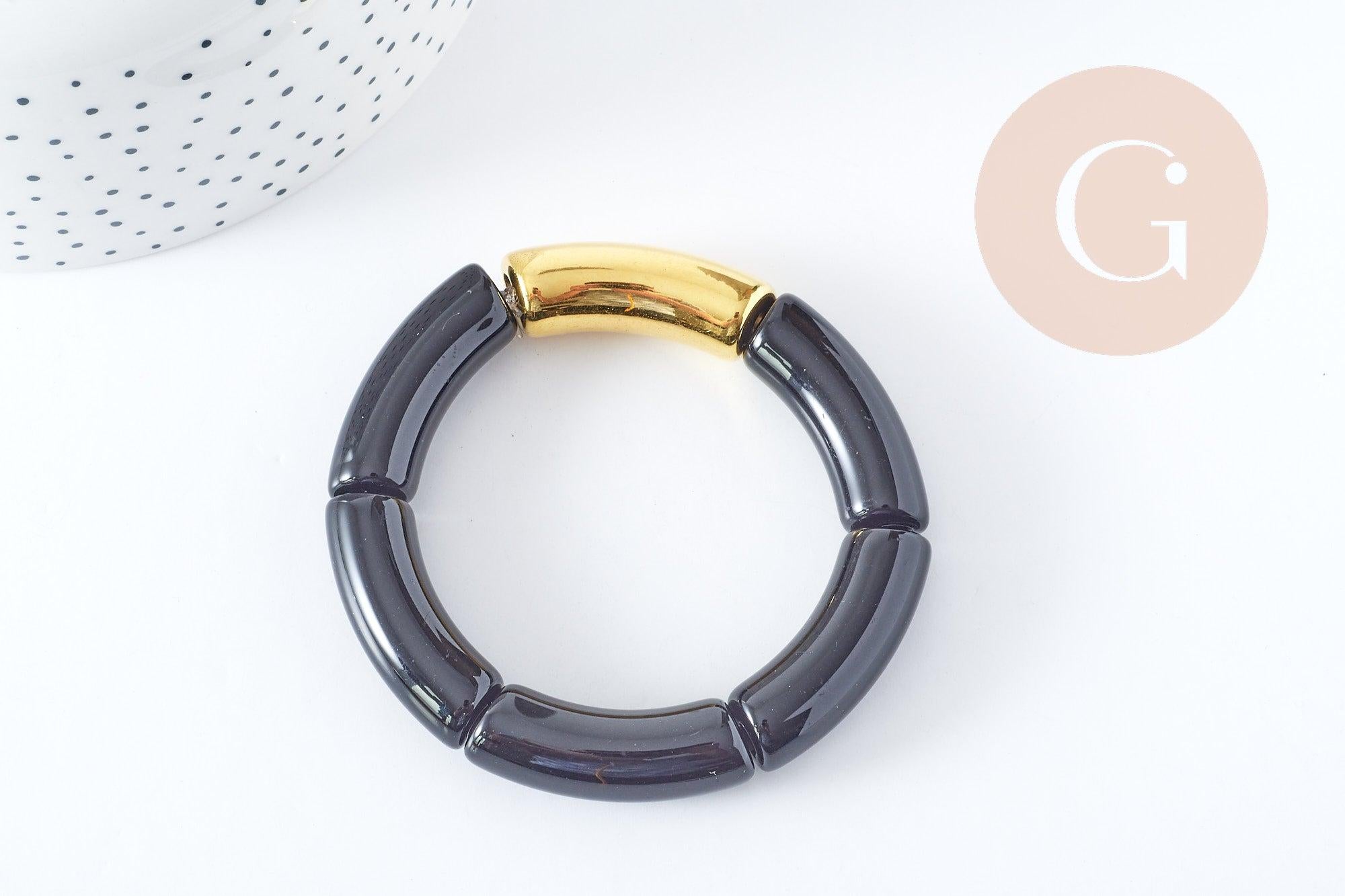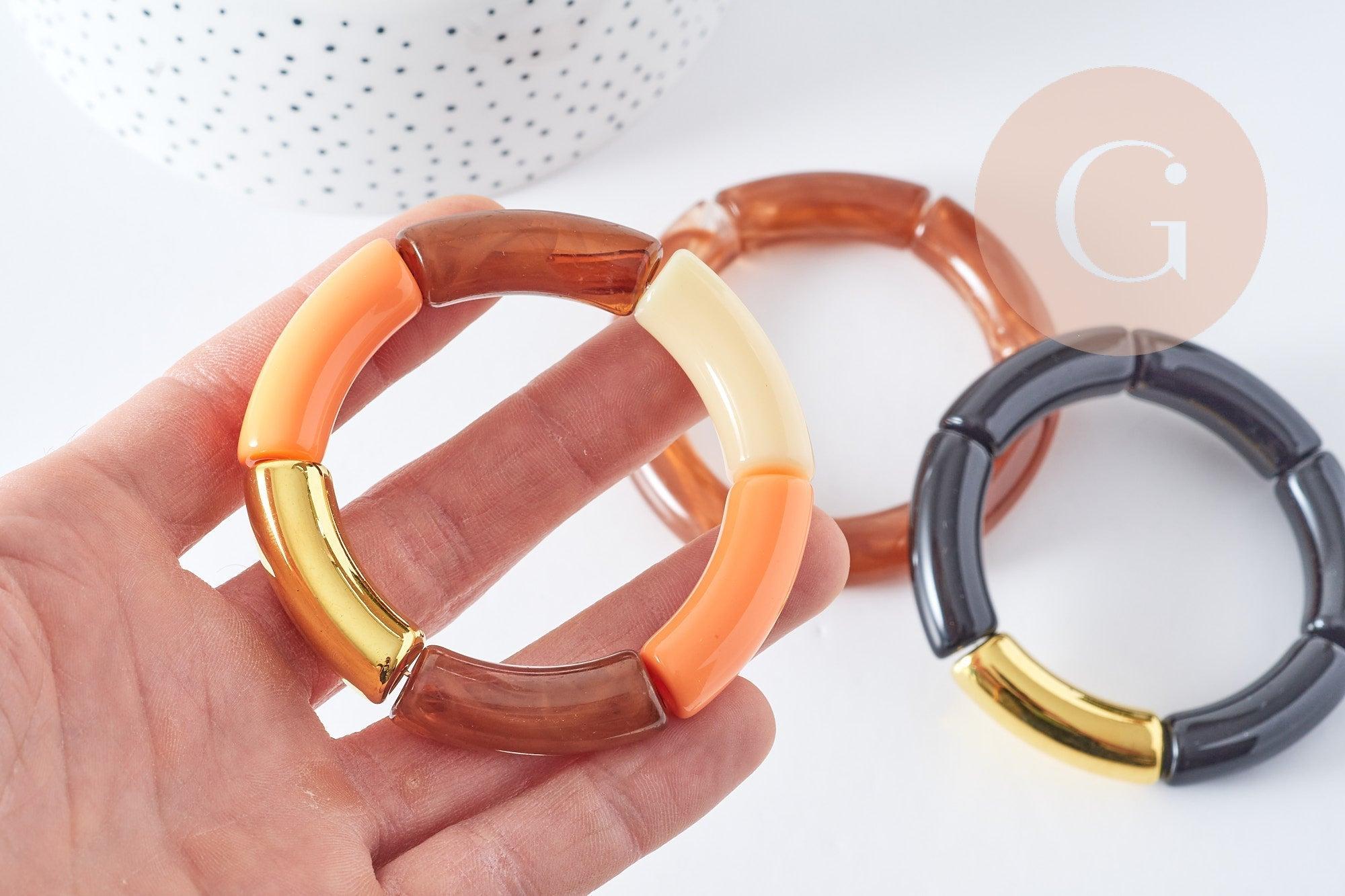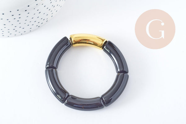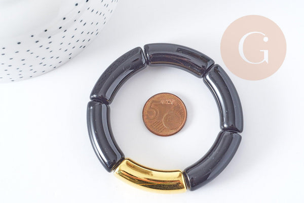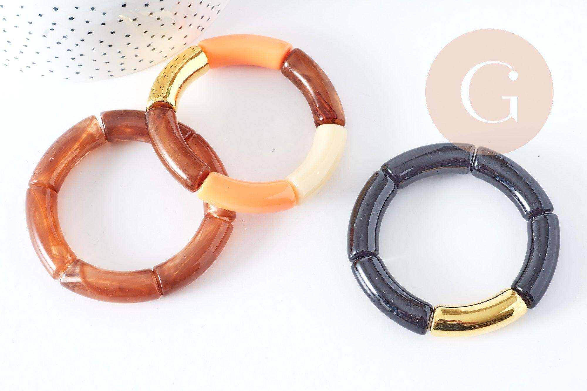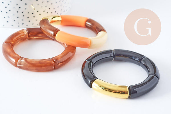 This elasticated resin bangle will enhance your looks! Its mix of amber, black and gold will give a very chic look while being easy to wear.