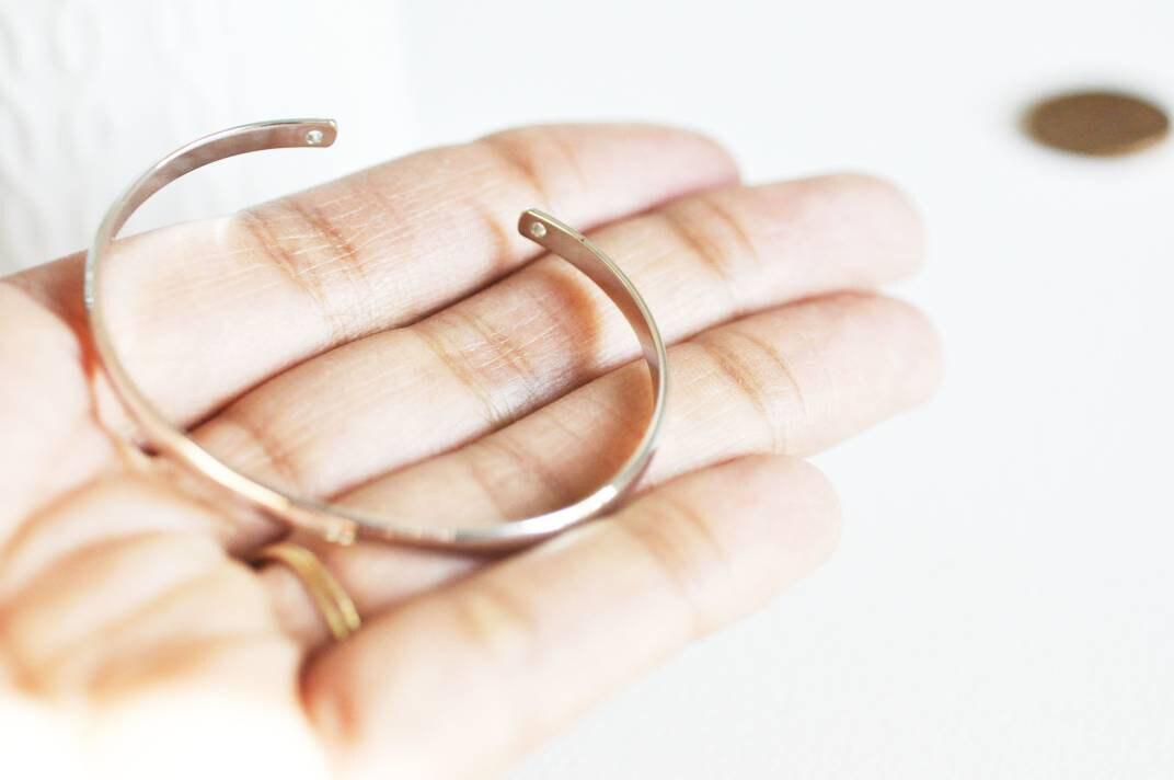 Adjustable bangle bracelet with white gold finish, pierced ball finish, rhodium finish, white gold gilding, jewelry making, silver bracelet, 55mm For cuff bracelets, here are magnificent copper supports in white gold finish (rhodium) pierced on each side to pass charms...