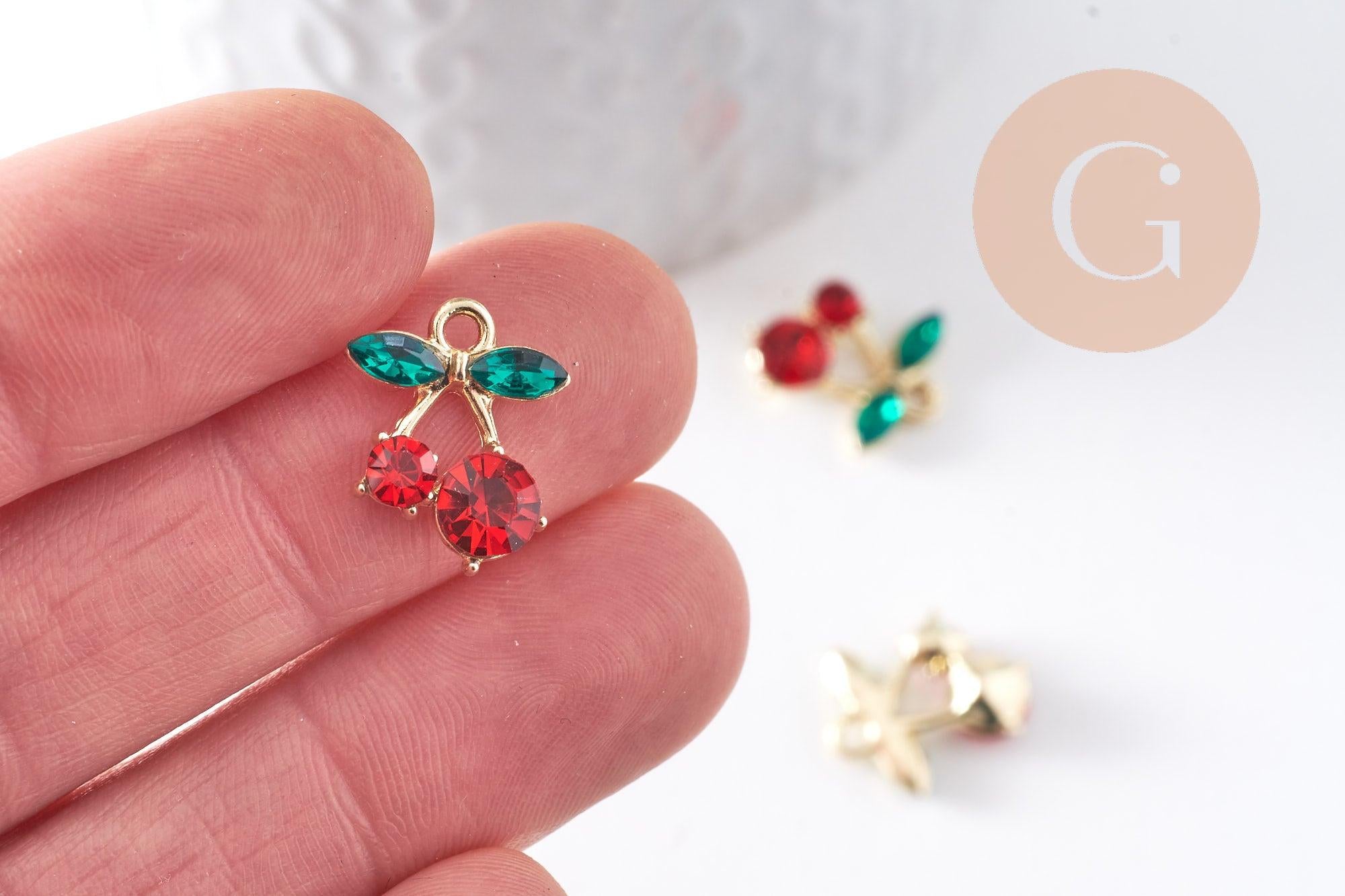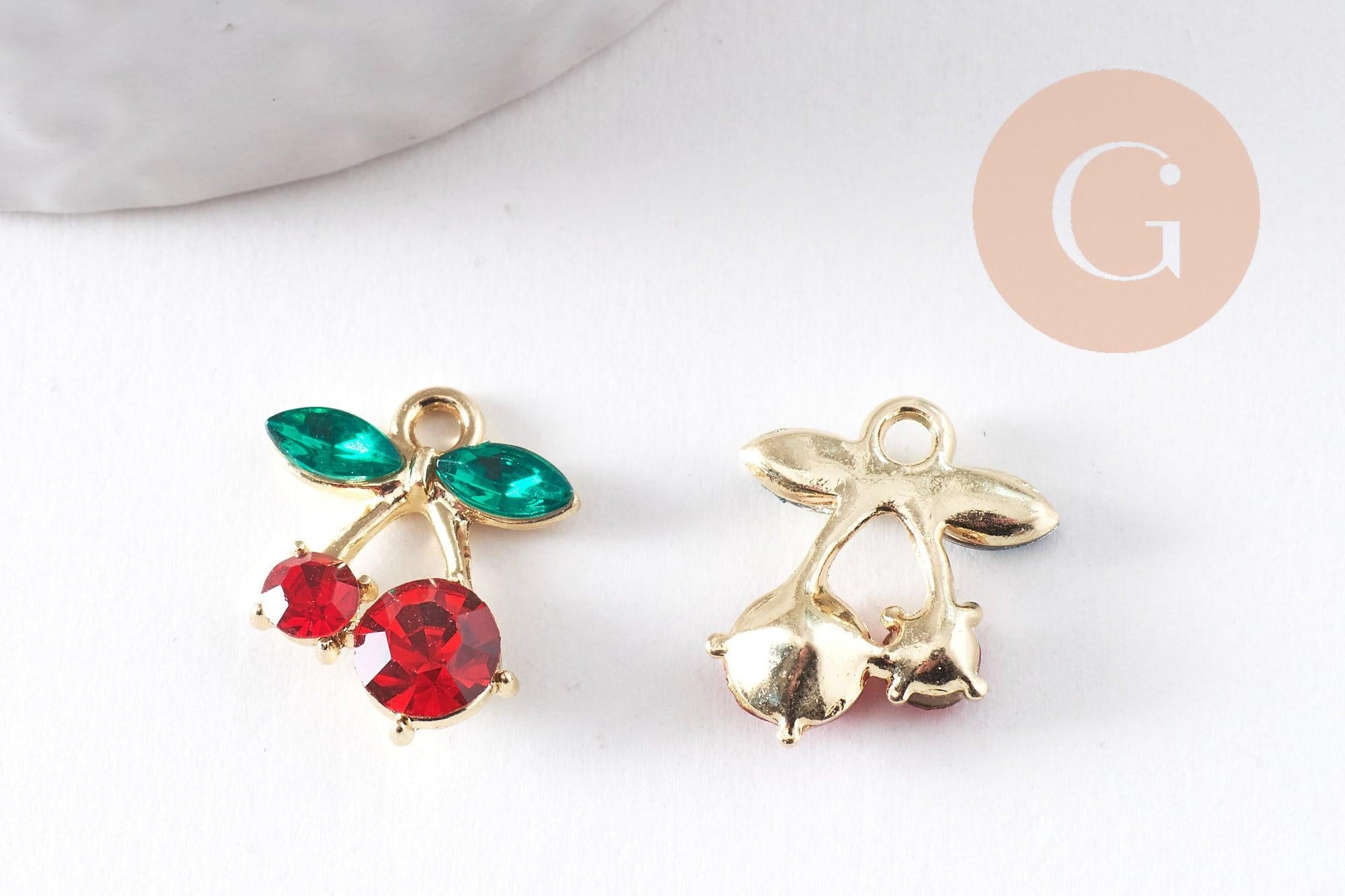Add a fresh and sparkling touch to your creations with this cherry charm in zircons and 16K gold-plated zamac .
