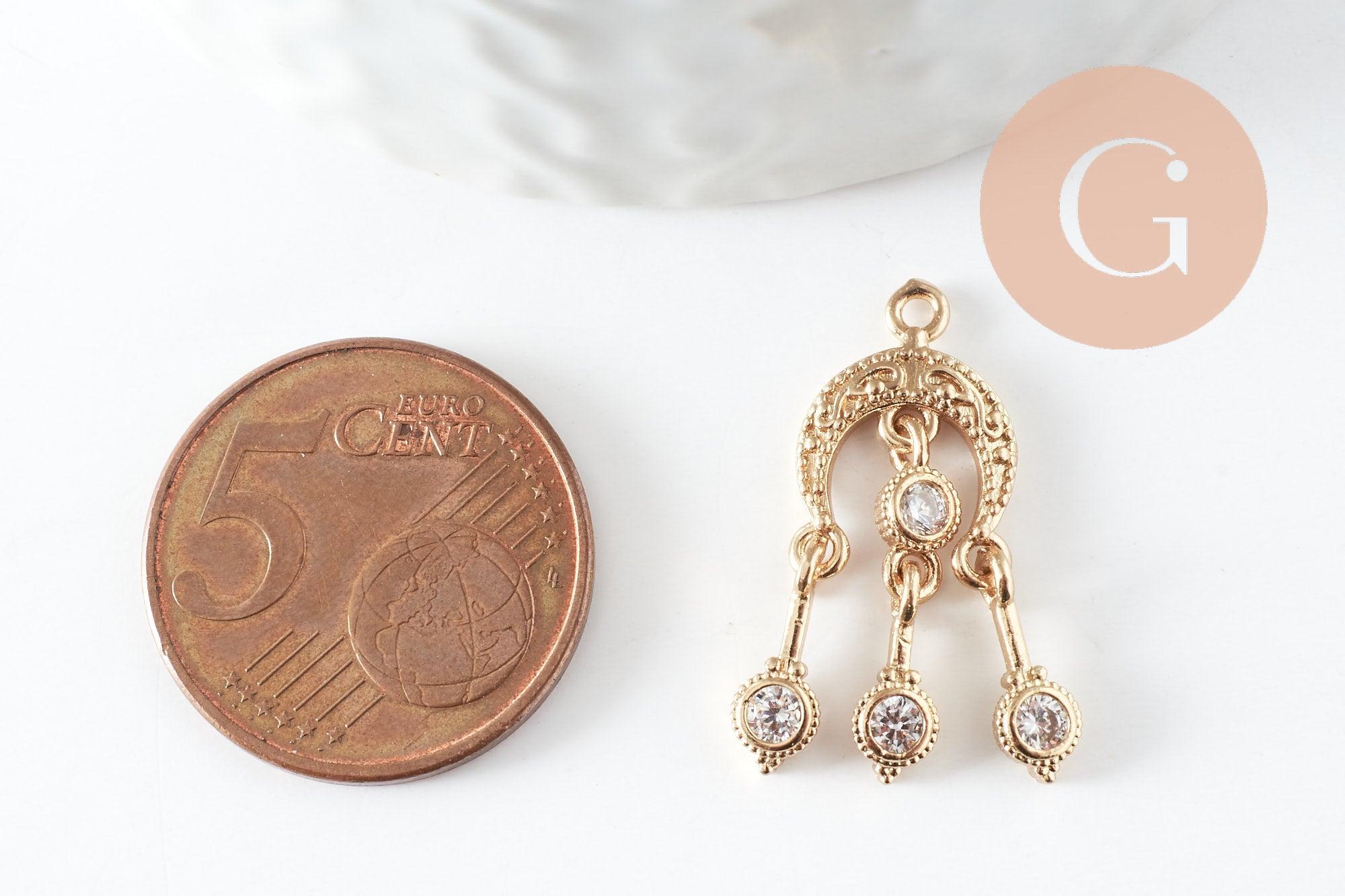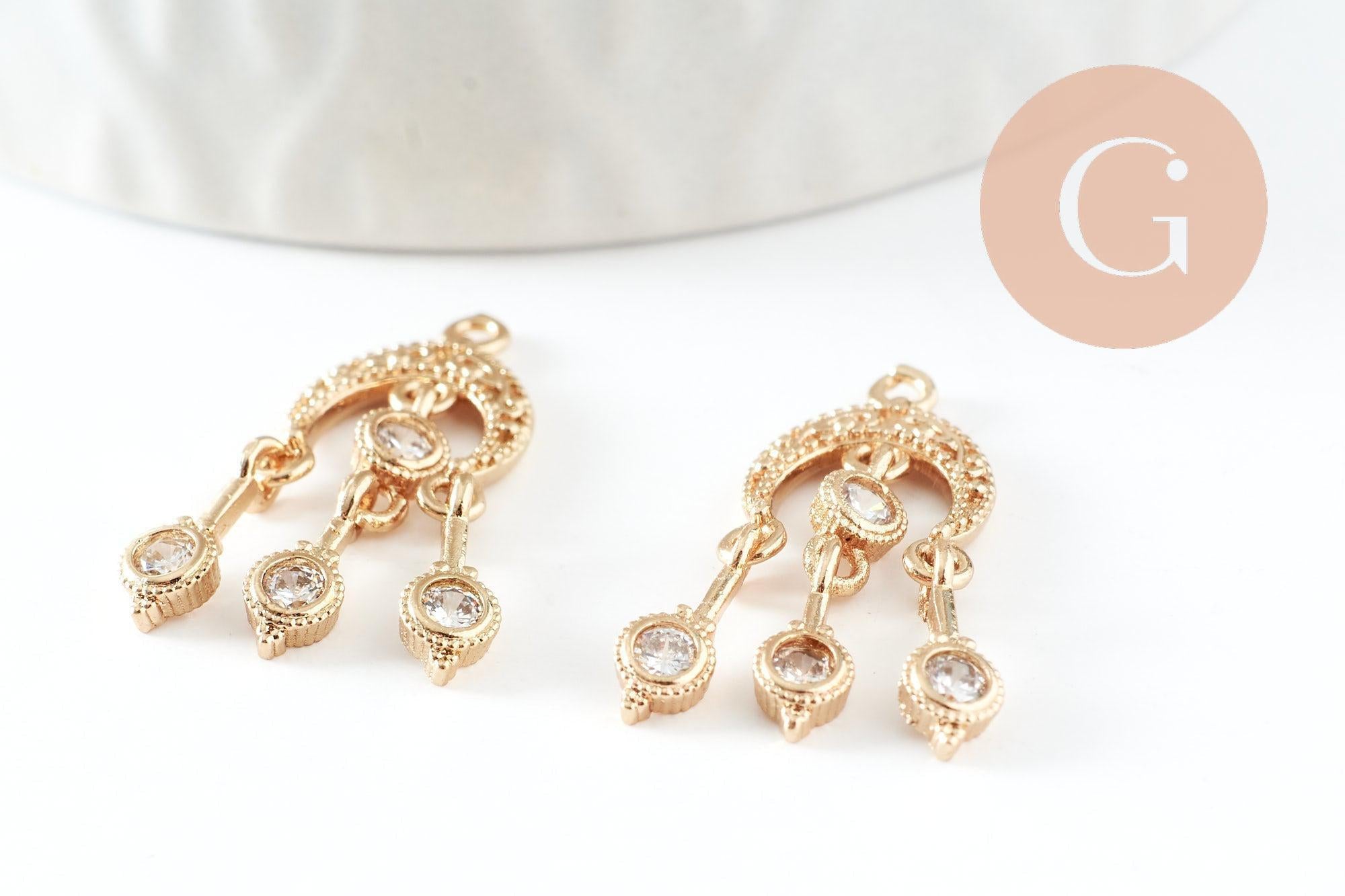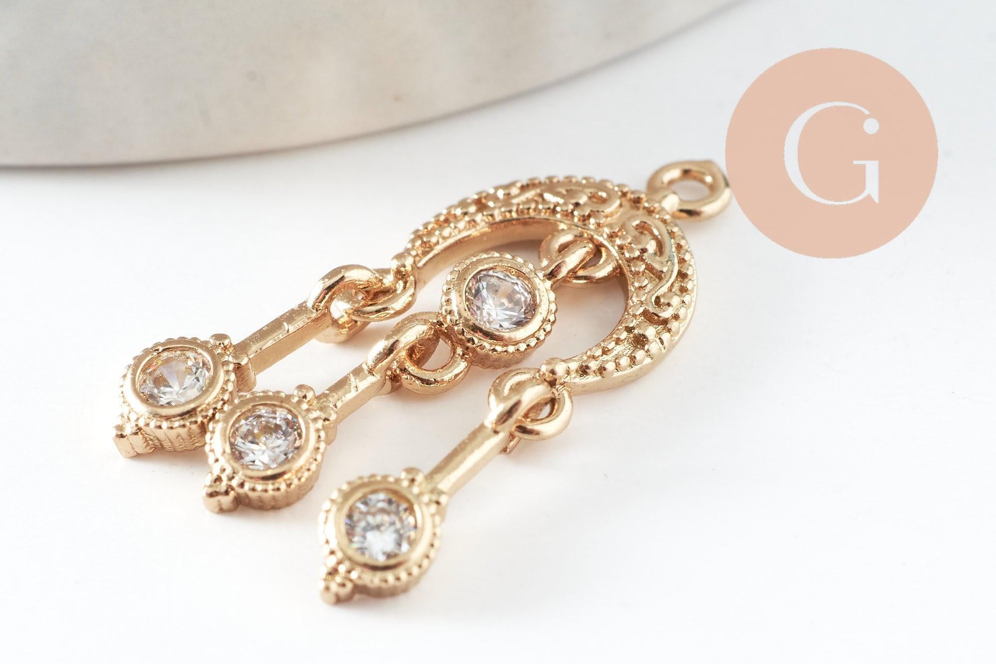 18k gold-plated brass chandelier charm, crystal, nickel-free, zircon earring creation, 25mm, x1 (G4220)