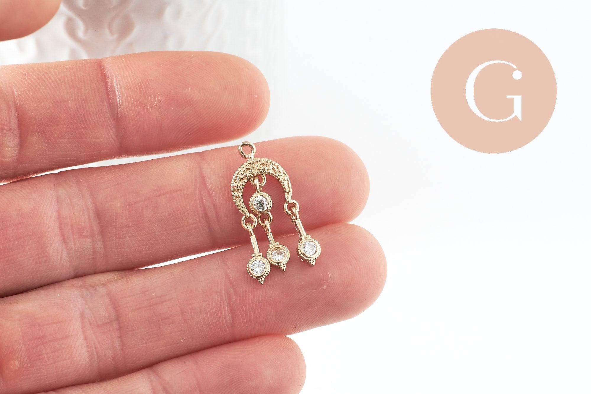 Breloque chandelier laiton doré 18k cristal,sans nickel,création boucles d'oreille zircon,25mm, x1 (G4220)