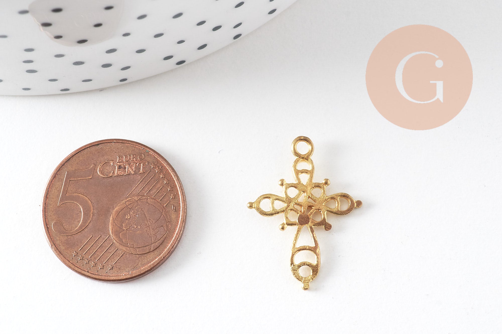 Adopt these raw brass religious cross charms , finely openwork like lace, to bring a symbolic and elegant touch to your creations. Their raw finish gives them an authentic charm, ideal for vintage, bohemian or spiritual styles.