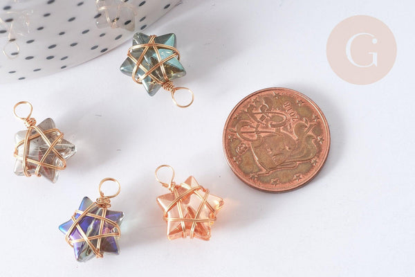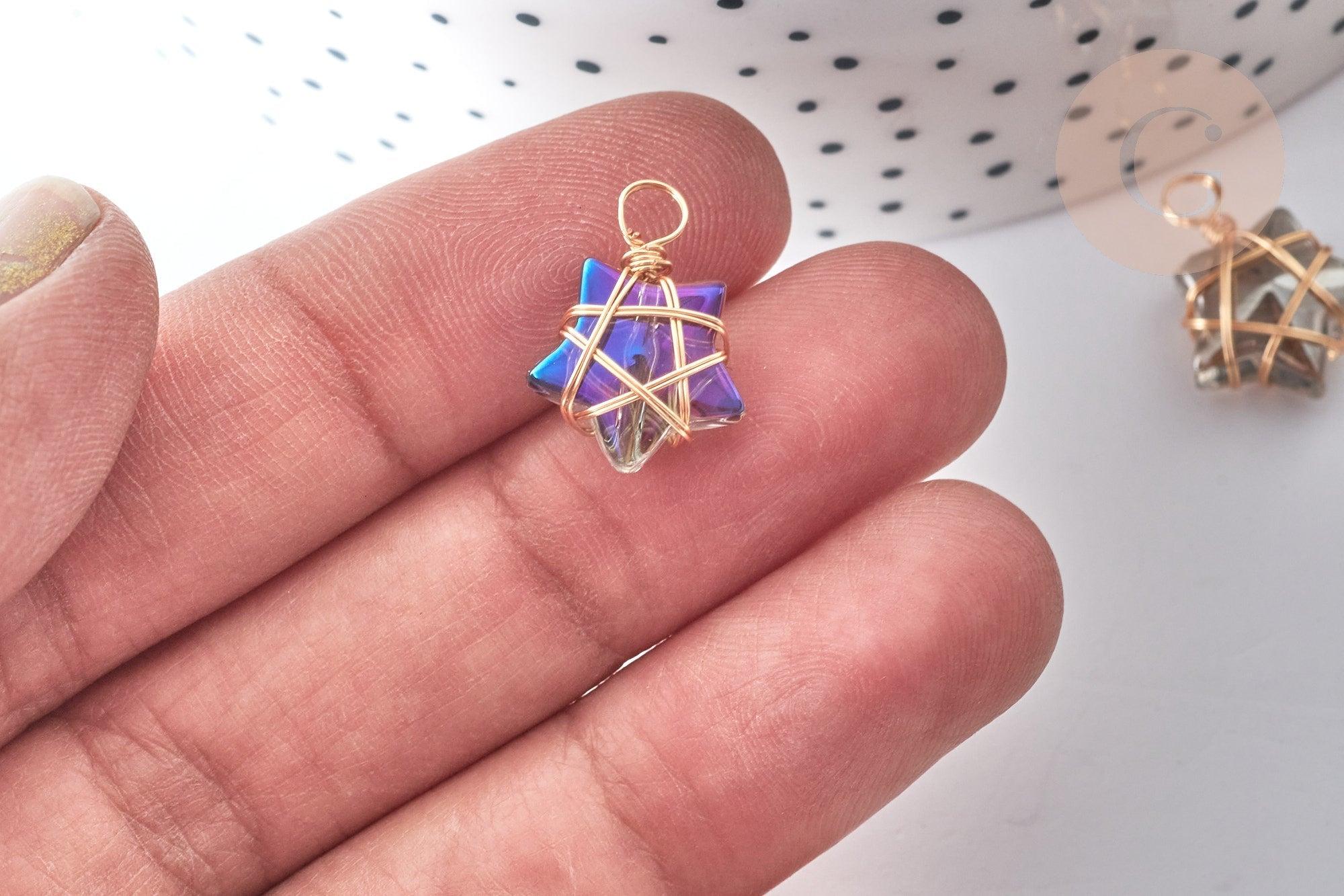 Fall for this small galvanized glass pendant with its golden brass wire. Use it to create a multitude of DIY costume jewelry !