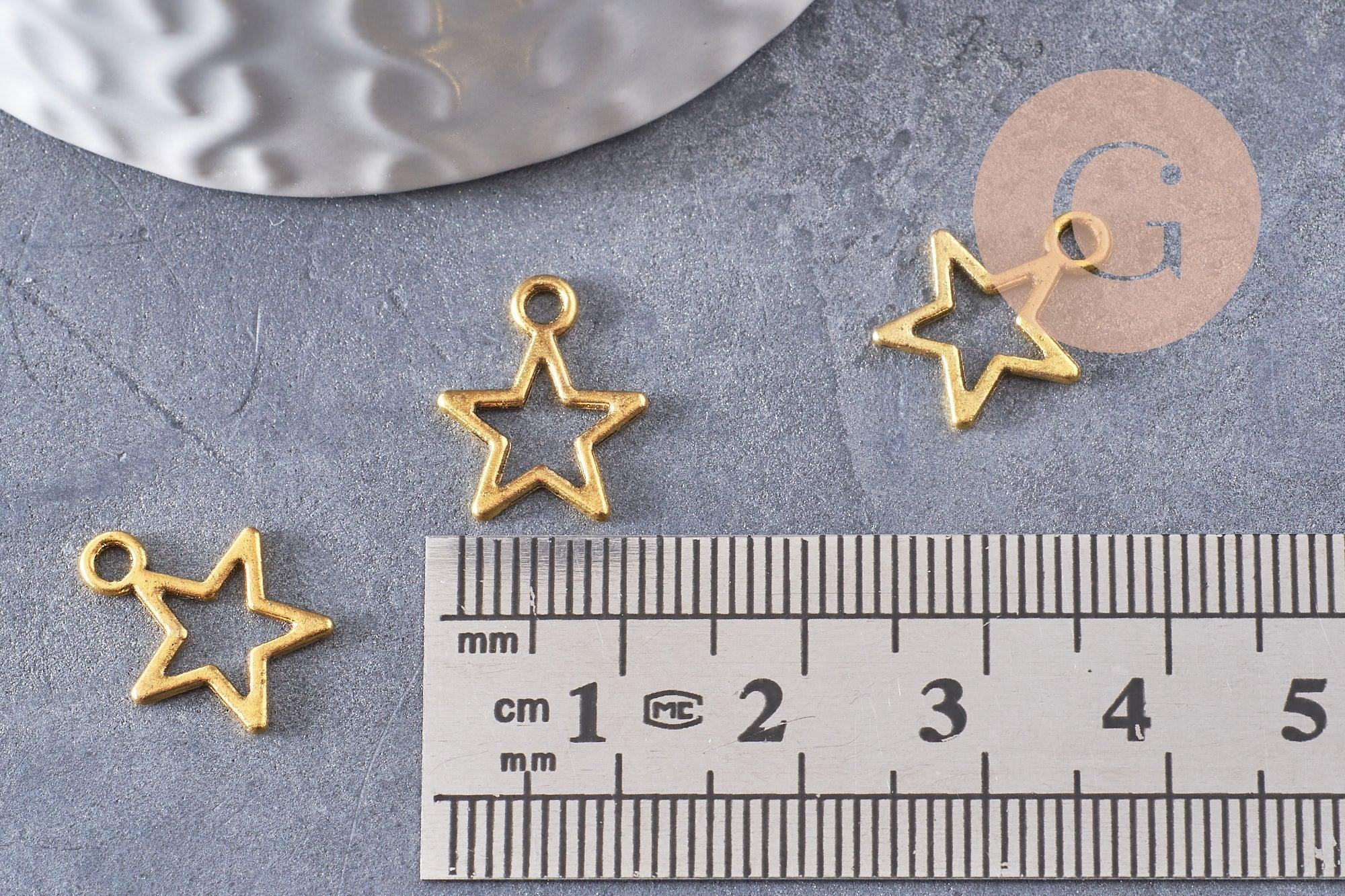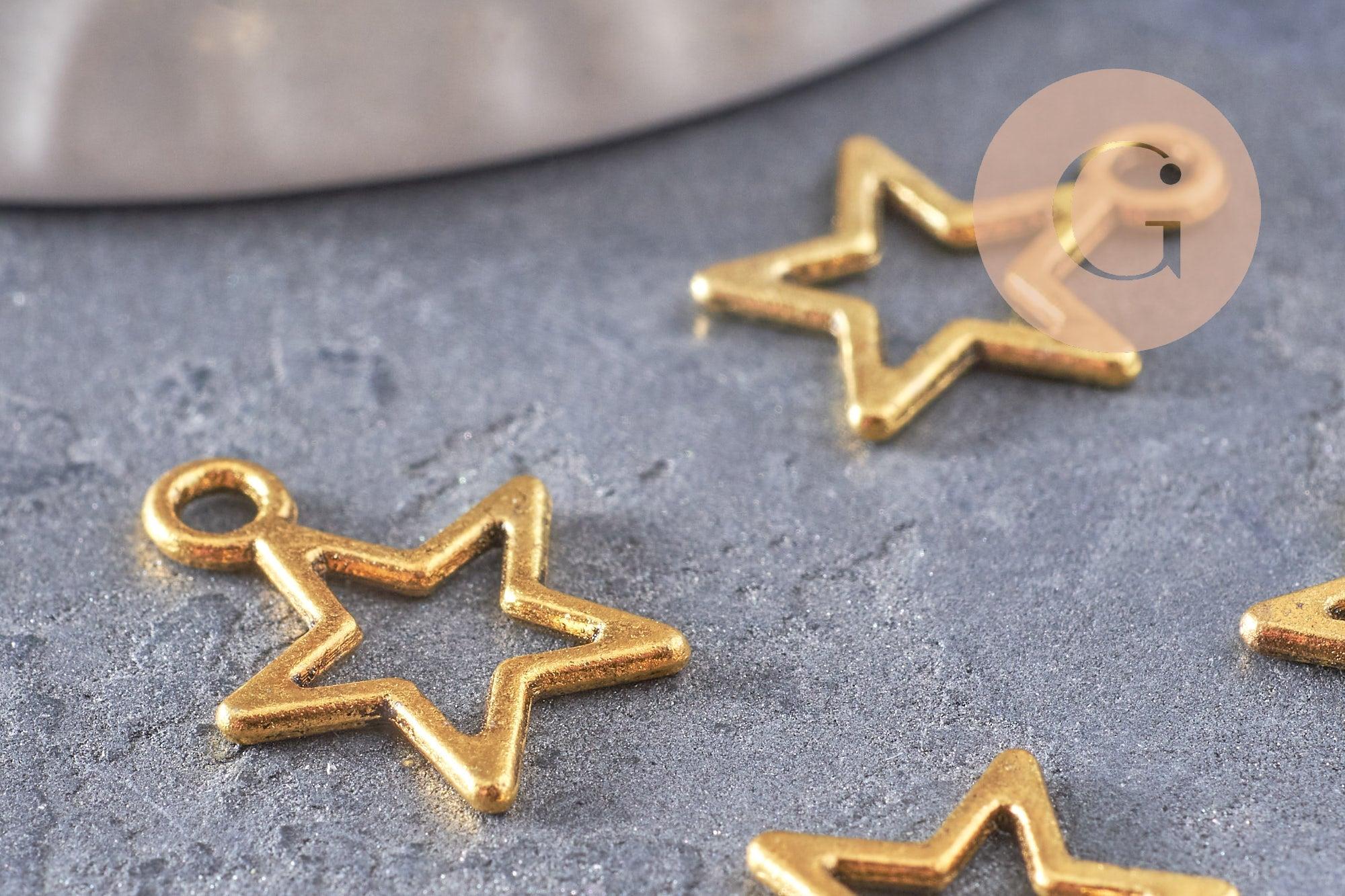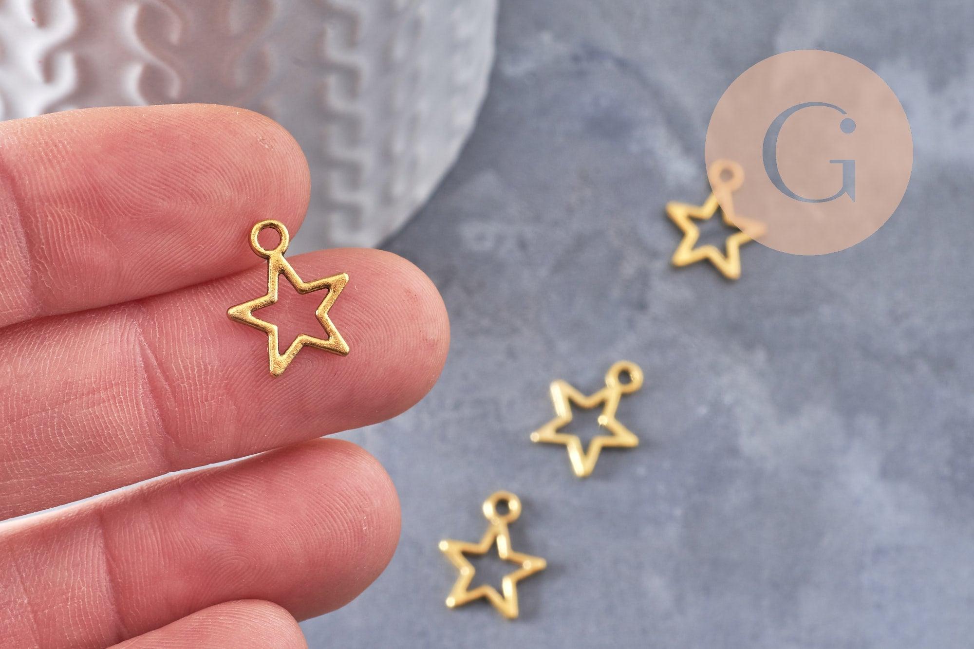 Illuminate your DIY creations with this set of 50 openwork star charms in gold-plated zamac. Their openwork design makes them both lightweight and visually striking, perfect for adding a celestial touch to your jewelry.
