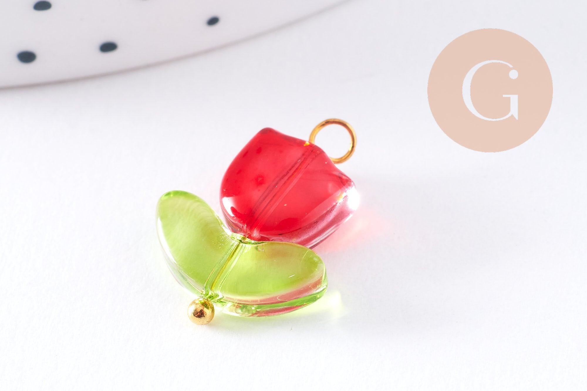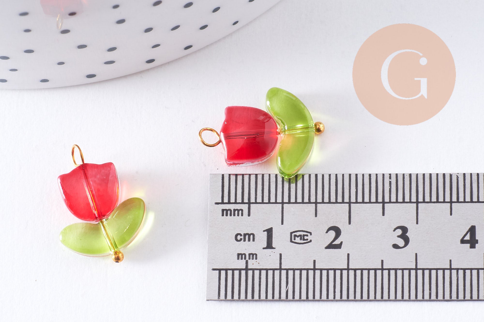 Add a floral and artisanal touch to your creations with these dark red glass tulip charms , handcrafted from artisanal glass, and mounted on a gold-plated brass stem . Their delicate shape and intense color make them perfect elements for poetic, romantic or spring jewelry.