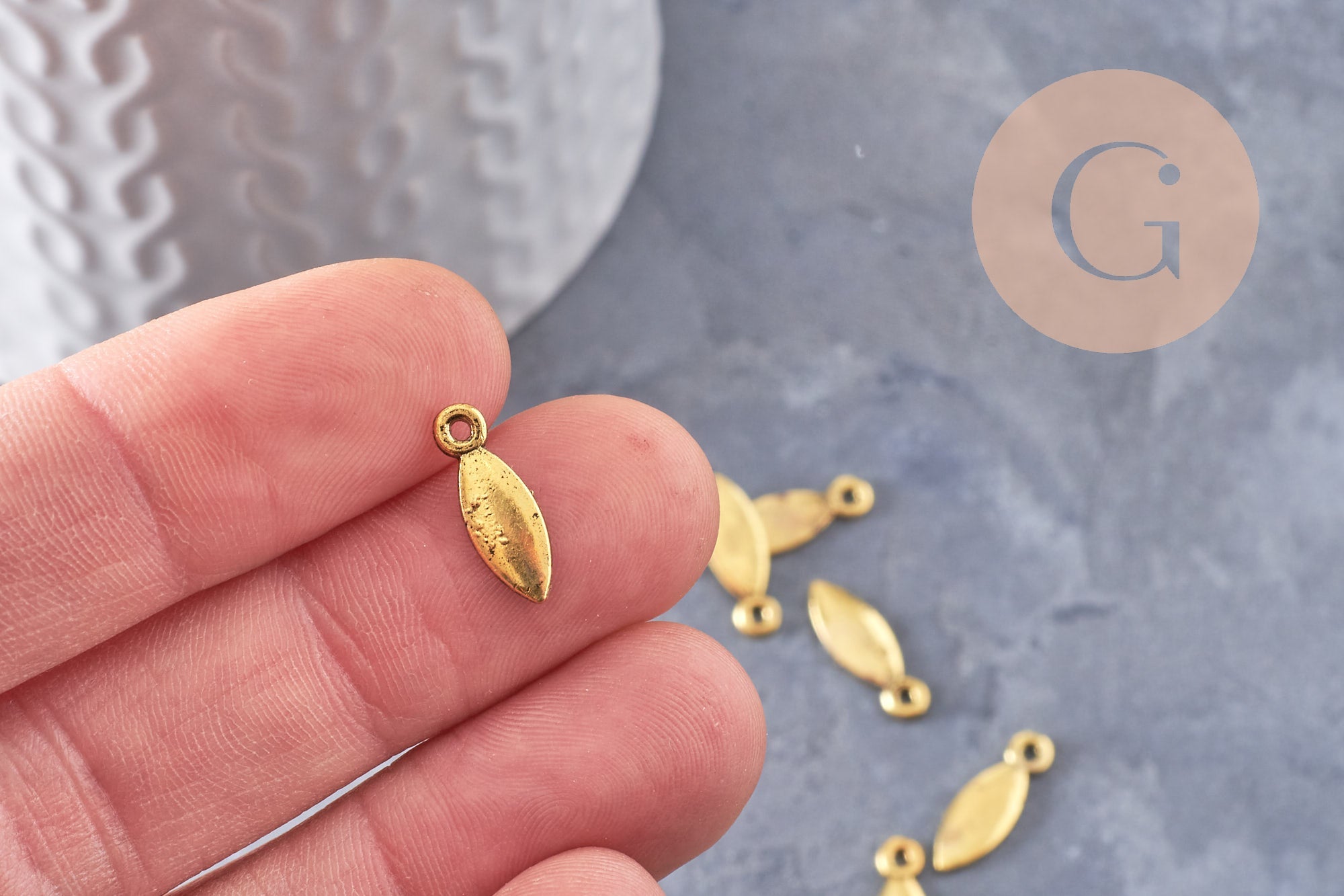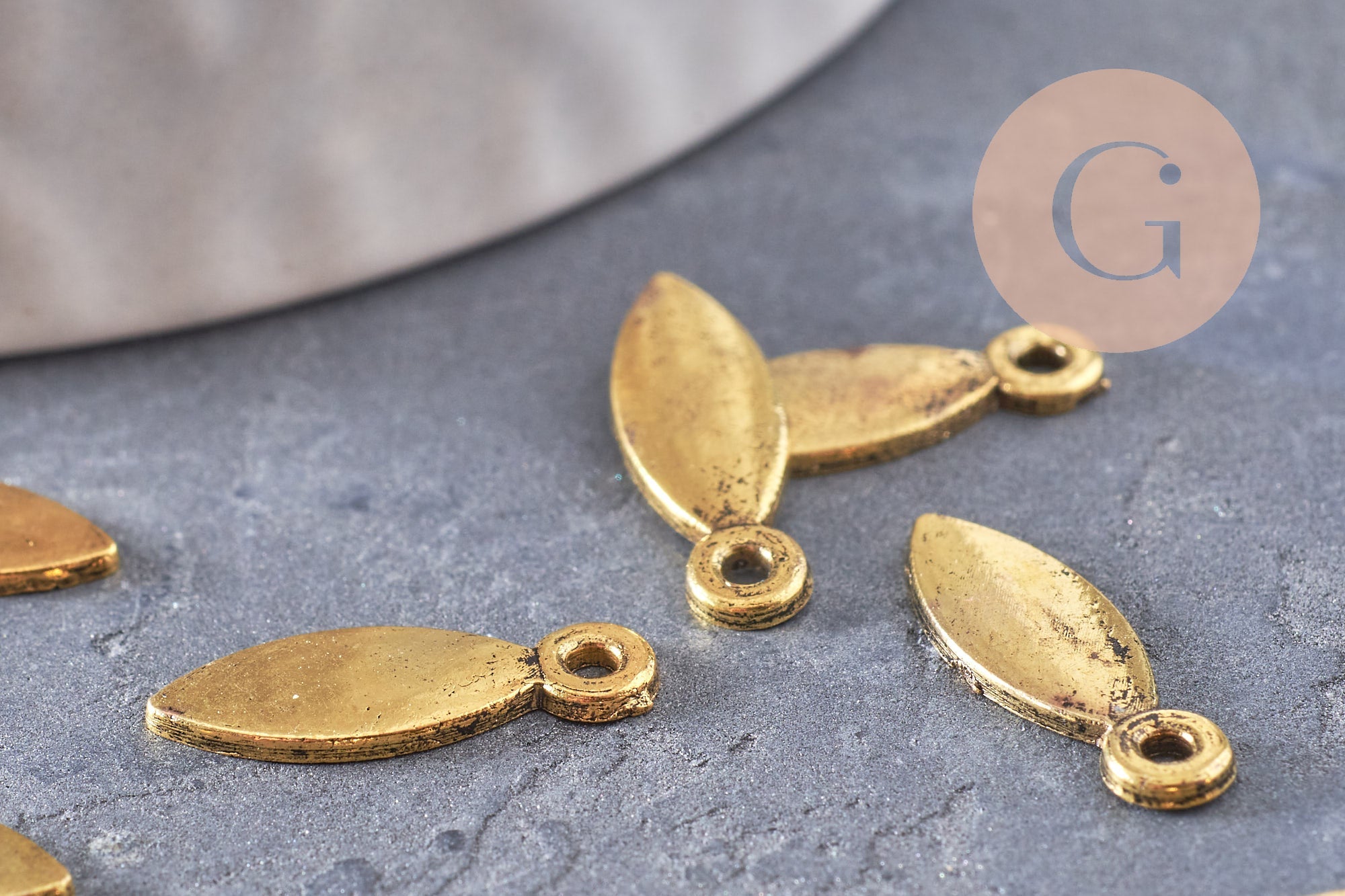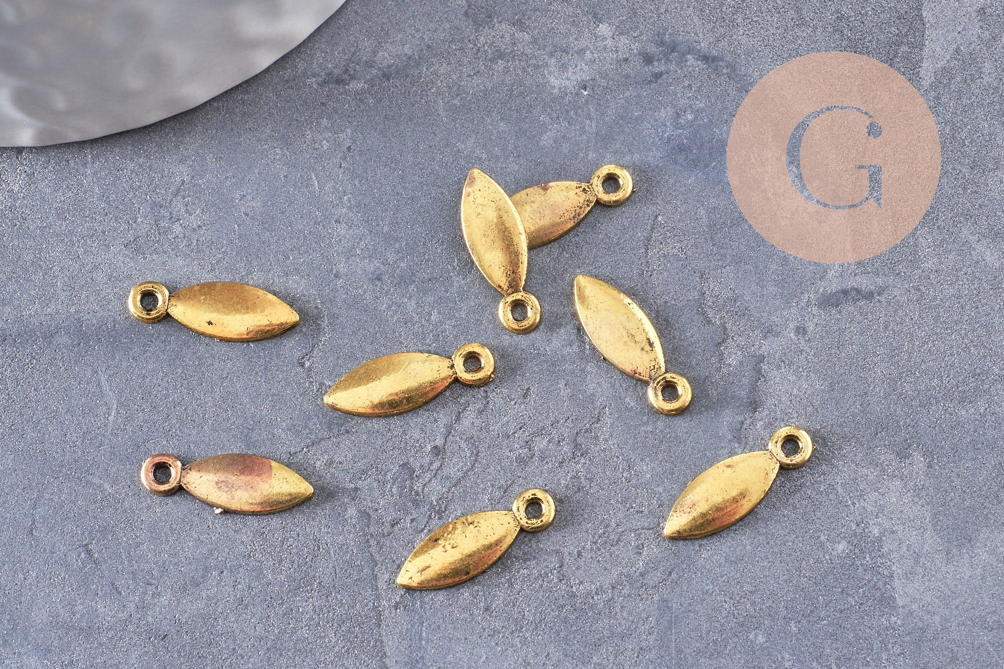 Breloque navette goutte zamac doré 15mm,x 20 (G5019)