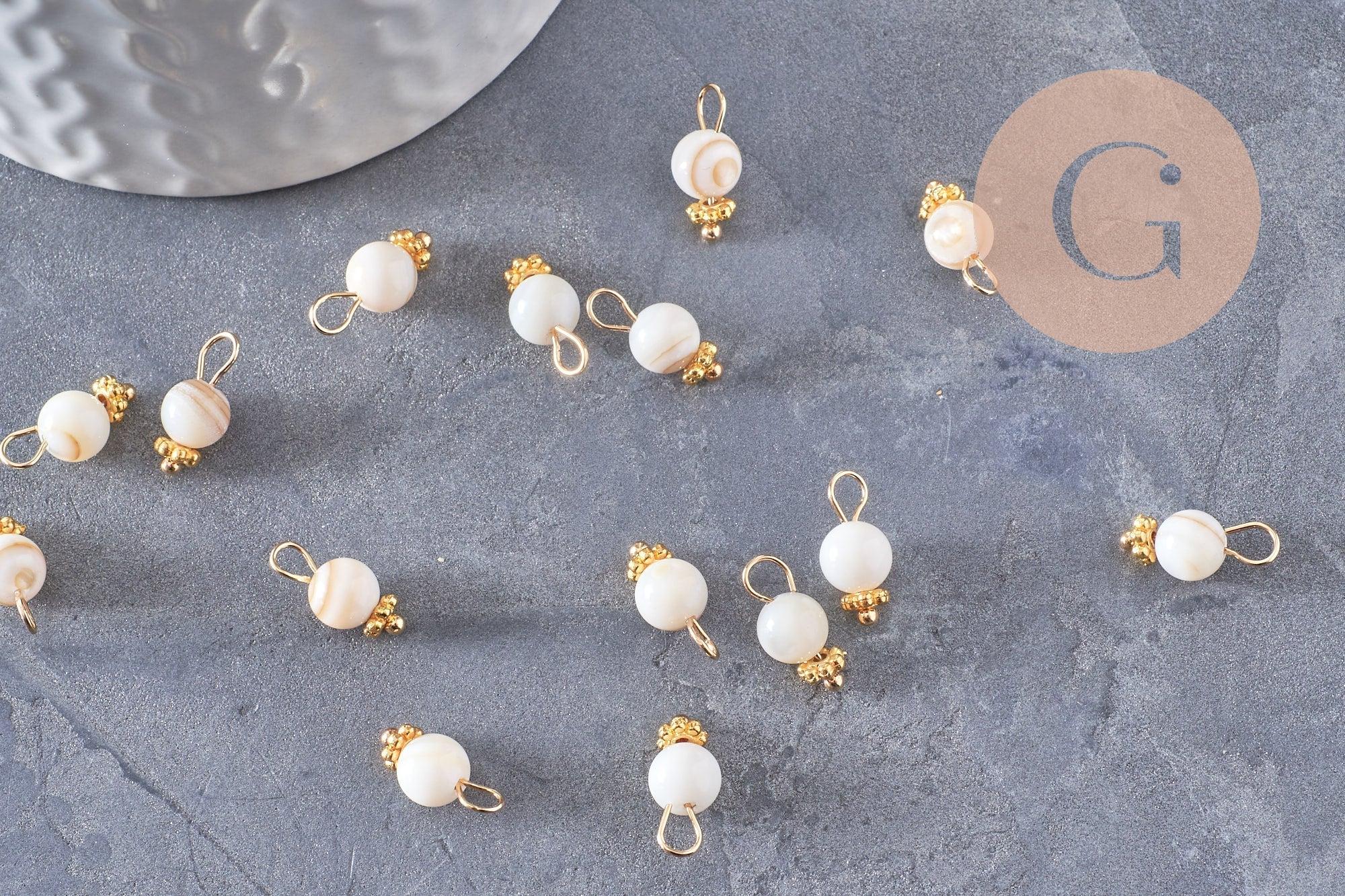 Add an elegant and natural touch to your creations with this set of 5 round charms in natural white and beige mother-of-pearl, set in a gold-plated zamac frame.