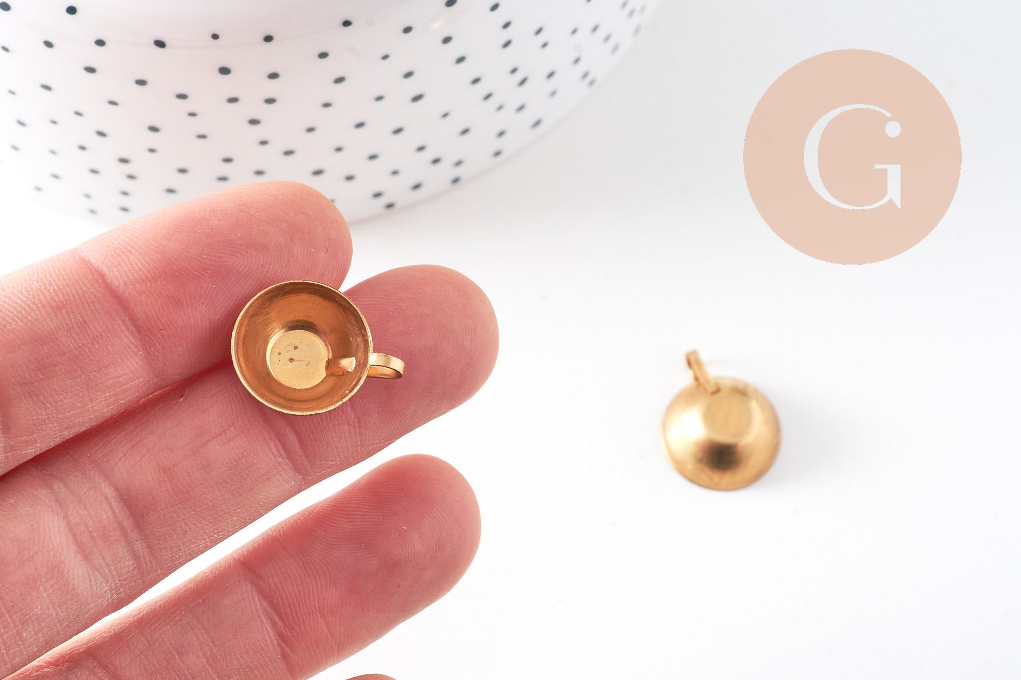 A pretty 3D cup charm in gold-plated brass, very fine. To combine with other charms for an Alice in Wonderland or Teat time theme.