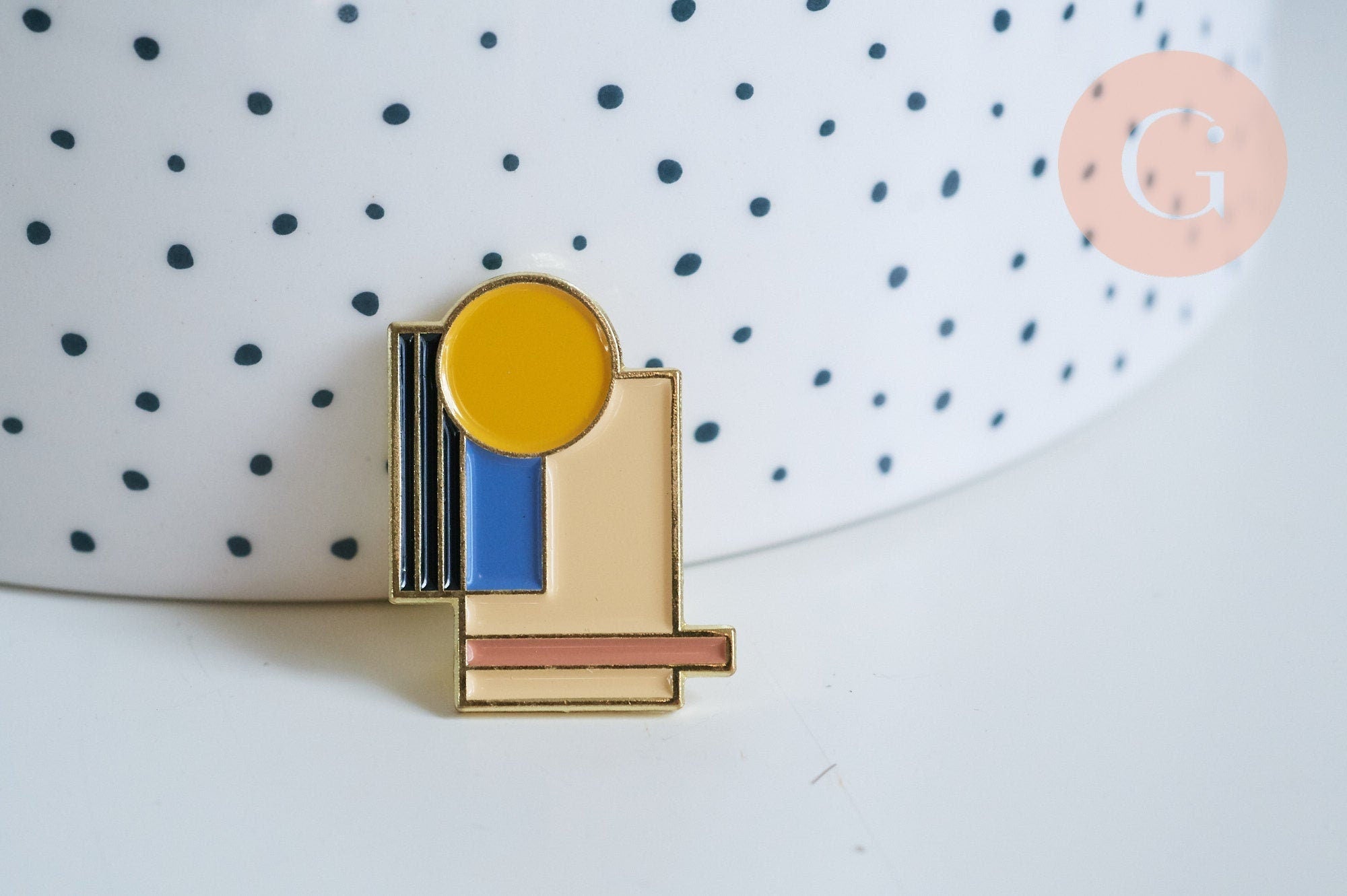 EP-Geometric enamel pins brooch blue yellow gold enamel 24.5mm, x1 G6717