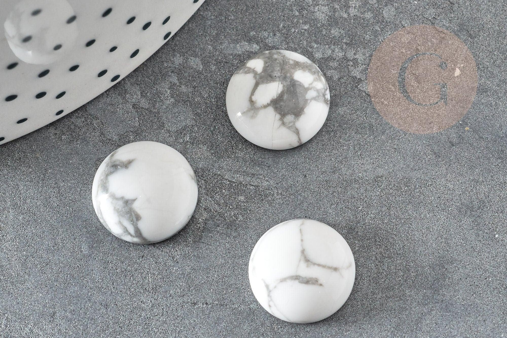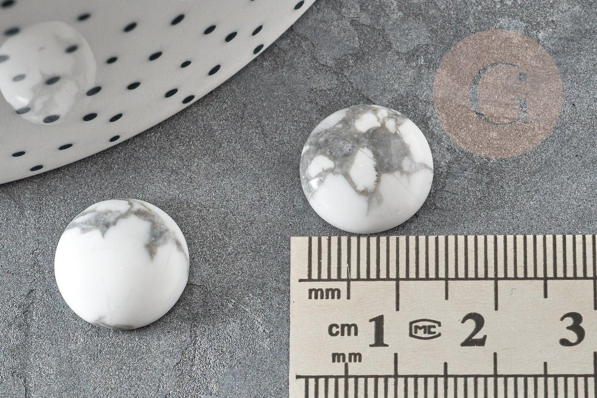 White howlite cabochon, craft supplies, round cabochon, stone cabochon, Howlite cabochon, natural howlite, 14mm, natural stone
