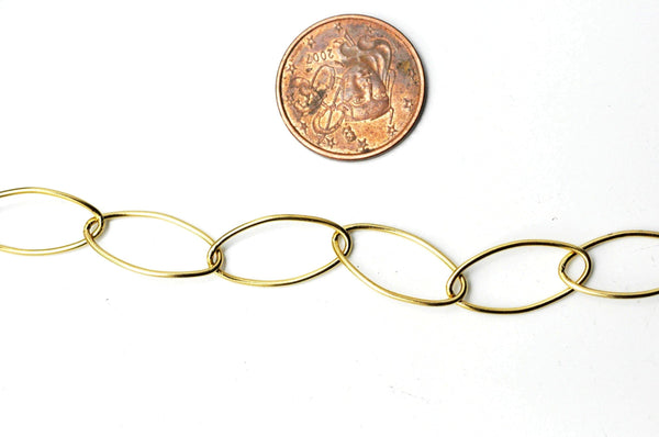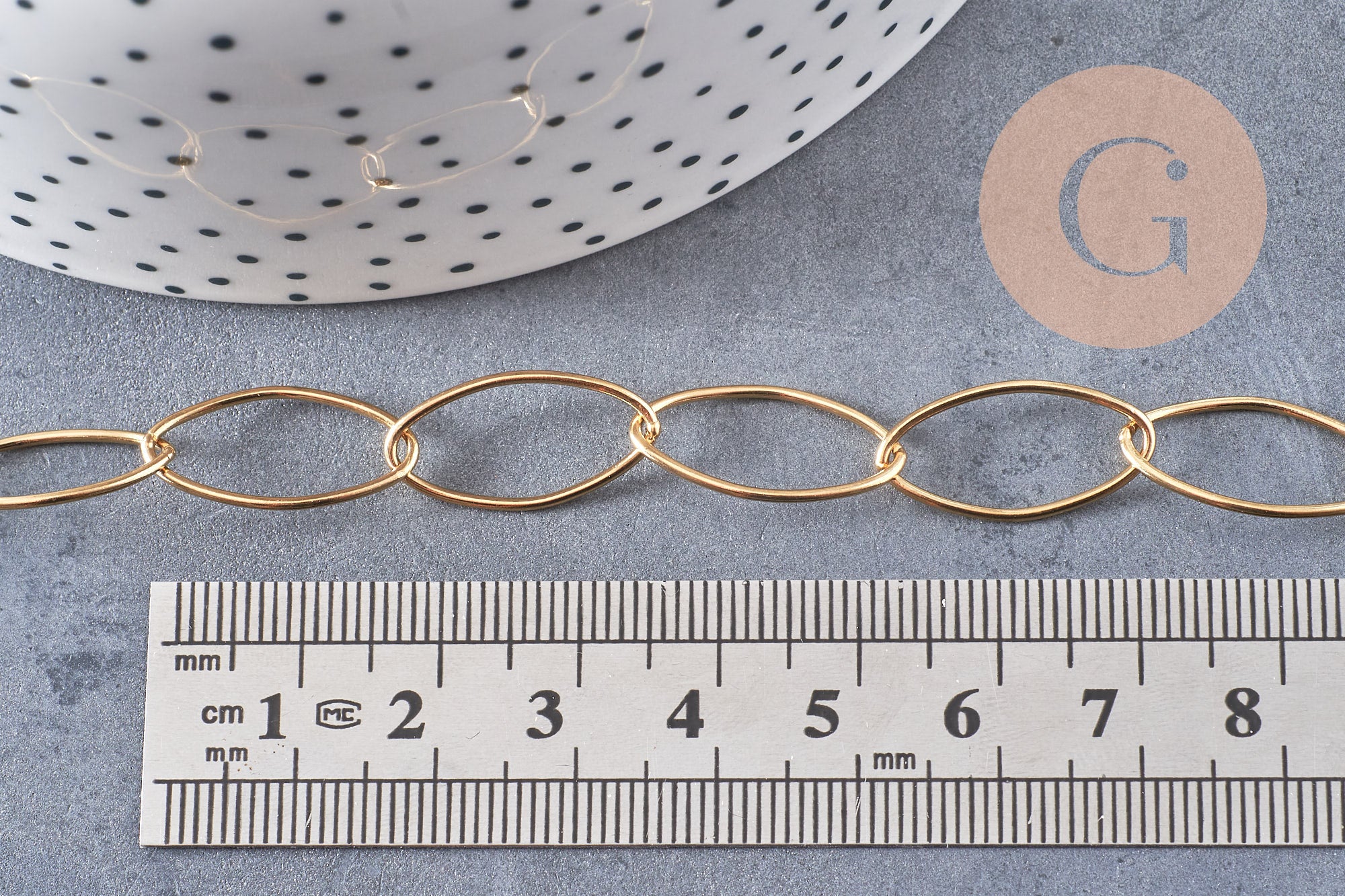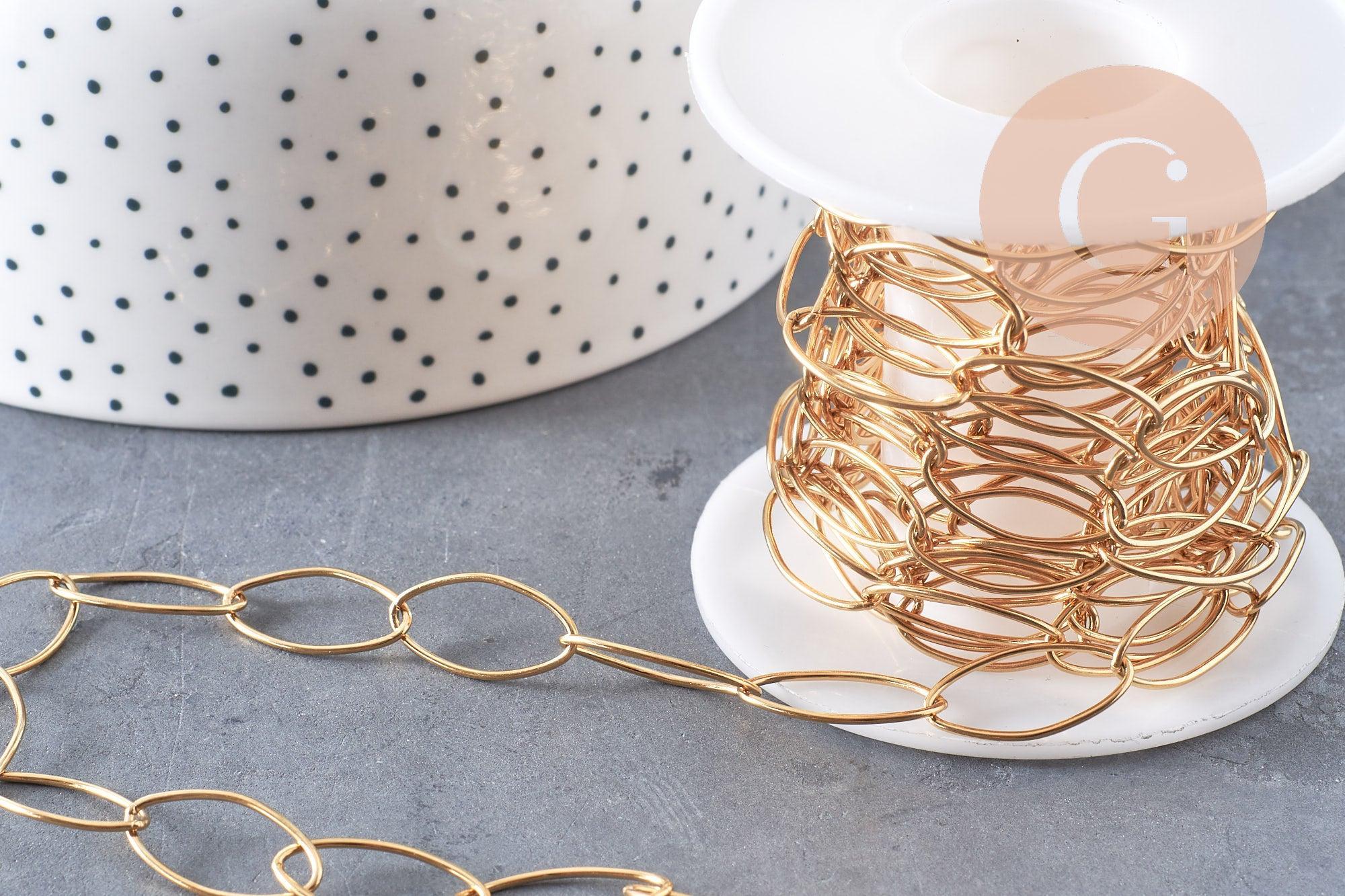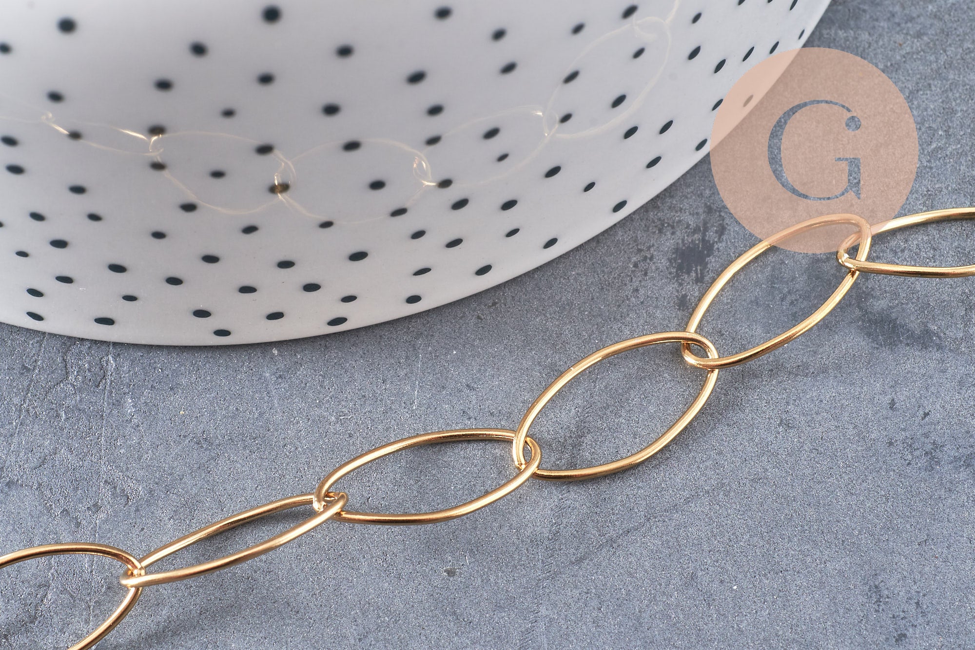Add a modern and elegant touch to your creations with this large oval link chain welded in 304 stainless steel with 18K PVD gold plating .