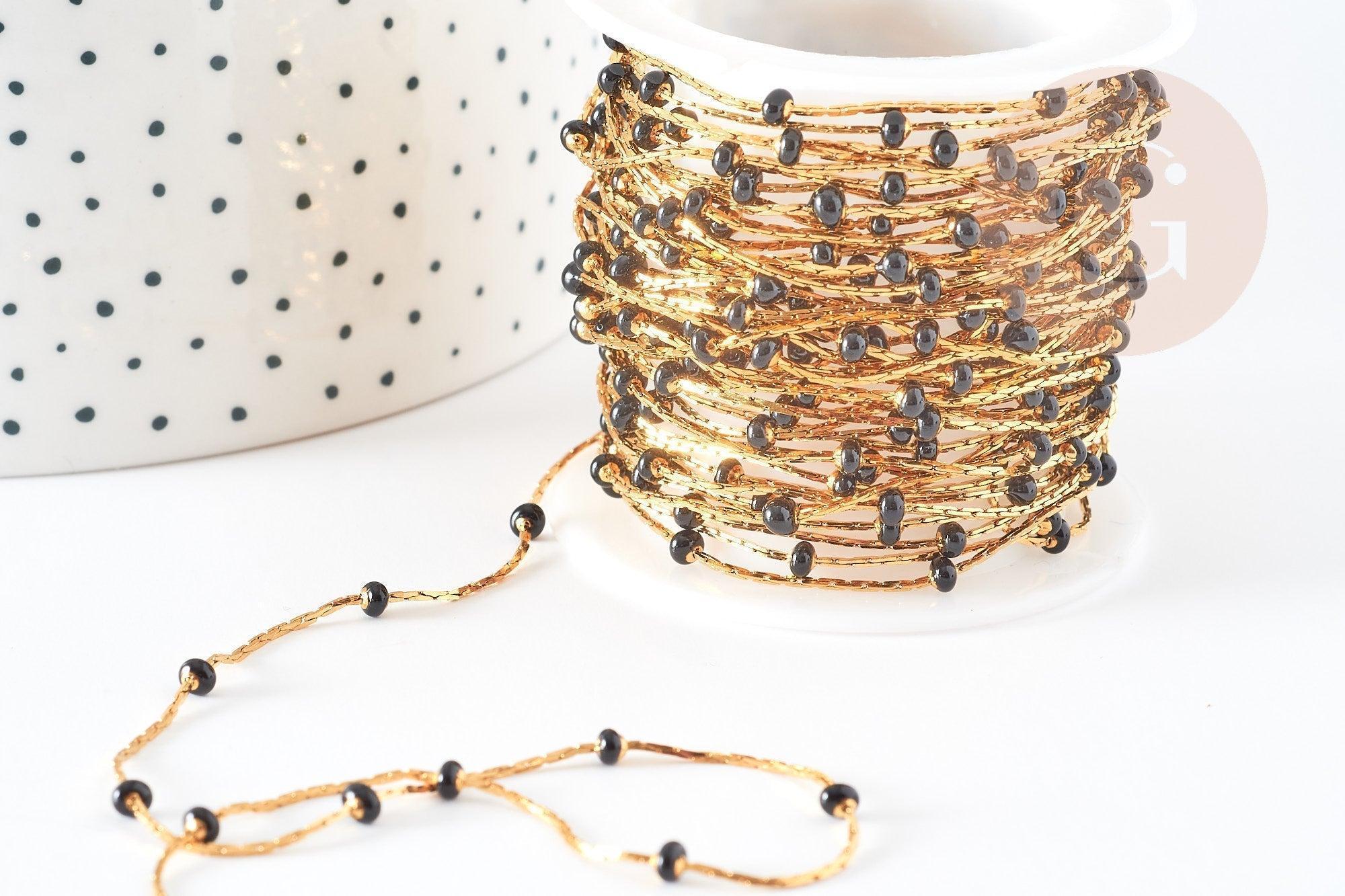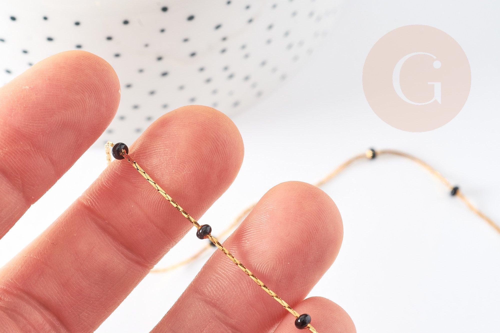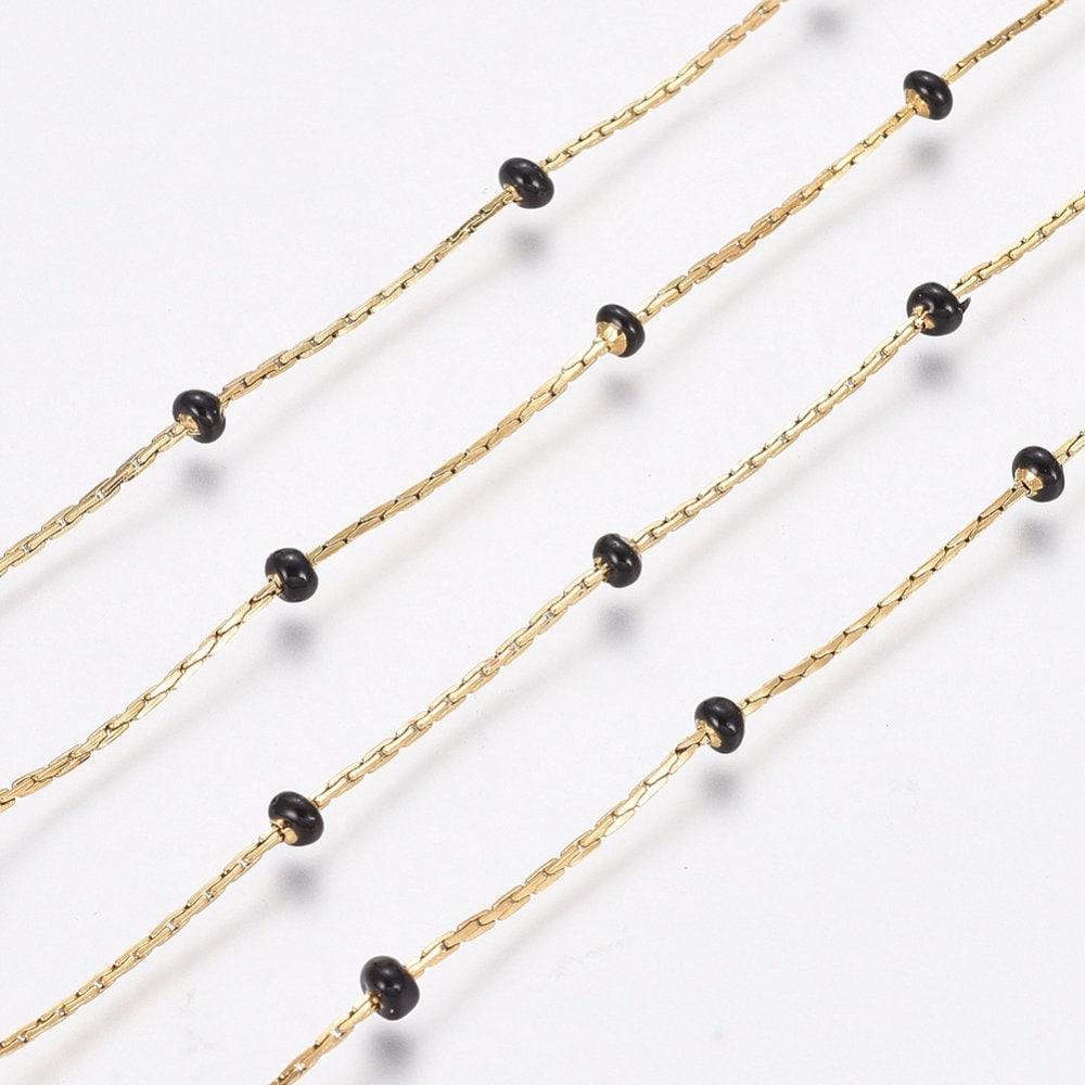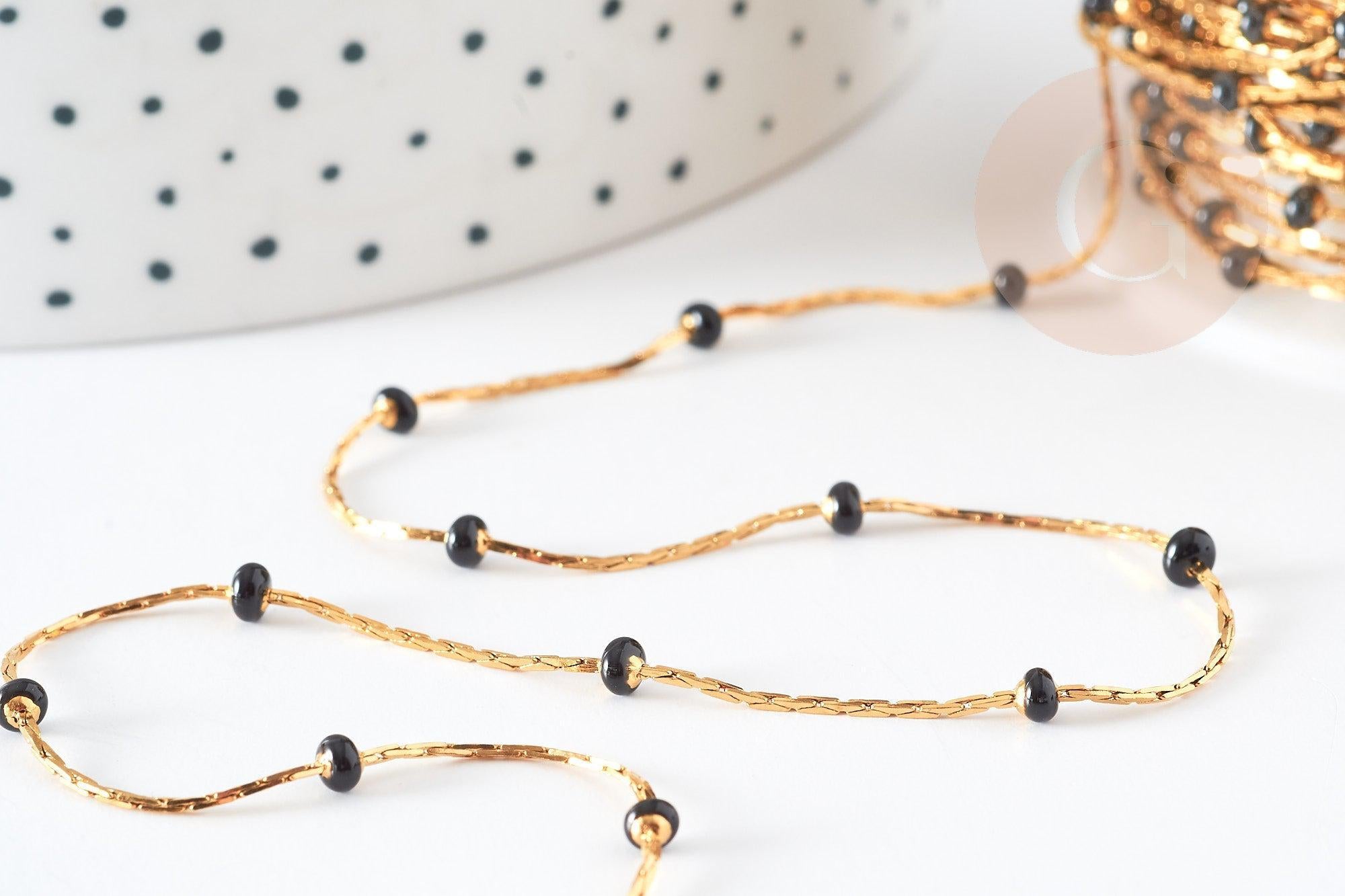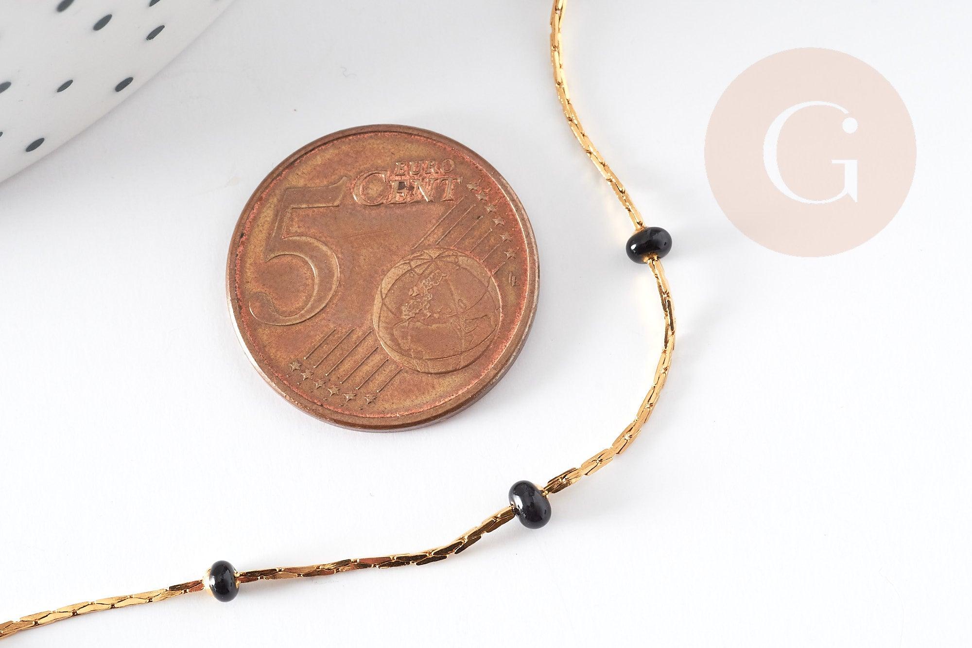 Chaine acier inoxydable doré IP 14 carats fantaisie résine noire 0.5-1.mm, x1 mètre (G5446)