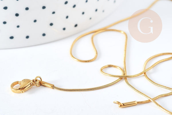 The 14k gold-plated stainless steel snake chain is ideal for creating strong and durable jewelry. 304 stainless steel offers resistance to corrosion, oxidation and discoloration, as well as being hypoallergenic, making it perfect for people with sensitive skin.