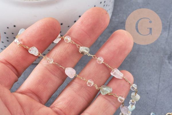 Enhance your creations with this ready-to-wear necklace made of natural stones and glass , mounted on a gold-plated brass chain and finished with a 304 stainless steel lobster clasp .