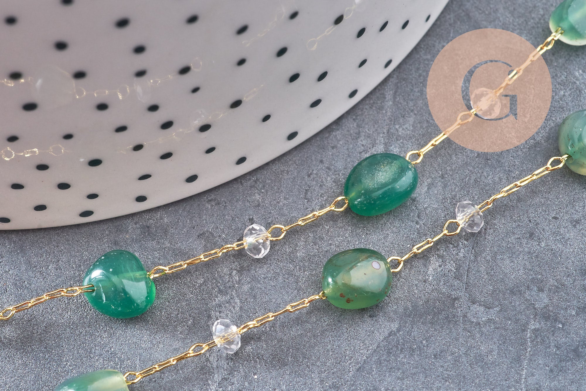 • Beads: natural stones + glass beads