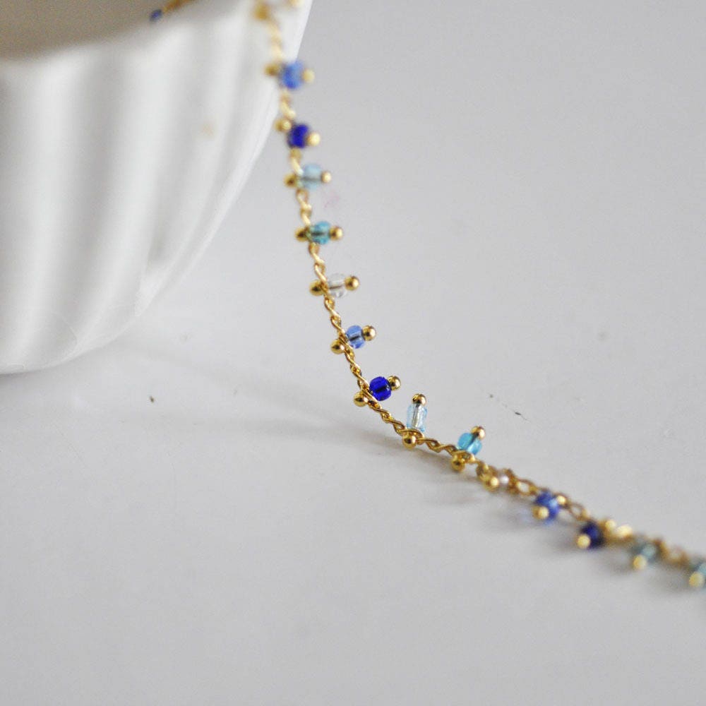 EP Chaine Dorée perles bleue 16K, chaine bijou, création bijoux, plaqué or,chaine perle dorée,chaine perles,2 mm, 1 metre-G629