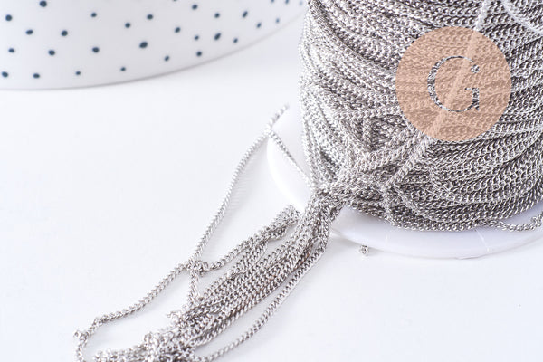 Create modern jewelry with this fine flat link chain in platinum brass . It is ideal for your creations of necklaces, bracelets, earrings and more.