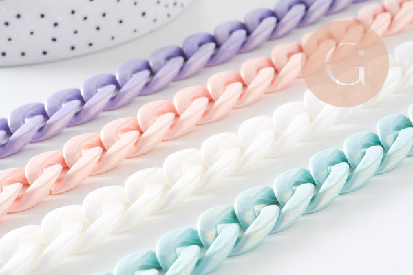Adopt this acrylic chain with large twisted links that can be detached, to make accessories as well as to make XXL costume jewelry .