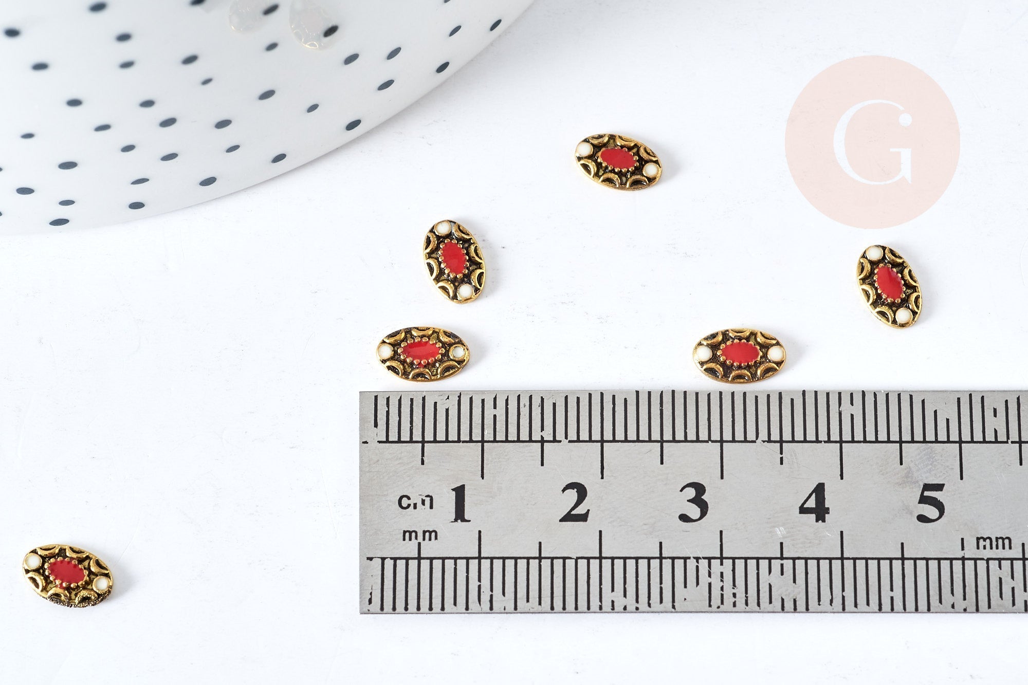Add a personal and trendy touch to your DIY jewelry creations with this bronze-colored alloy element enameled in red and white . This little element is perfect for personalizing your round or oval stone or glass cabochons and creating original...