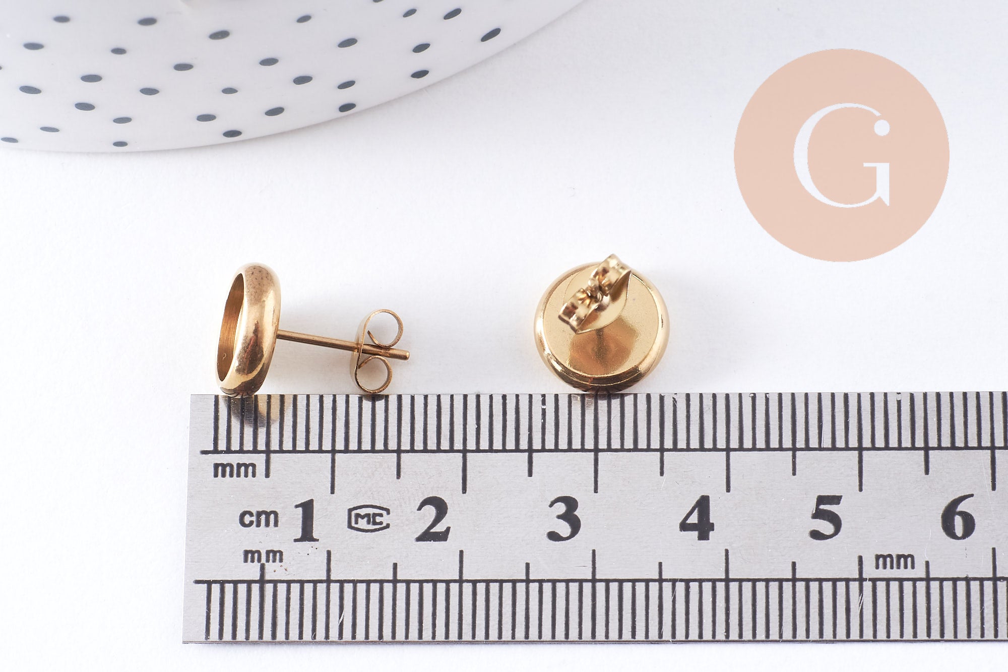 Ear studs with cabochon support 8mm 304 stainless steel IP gold, x10 (G10608)