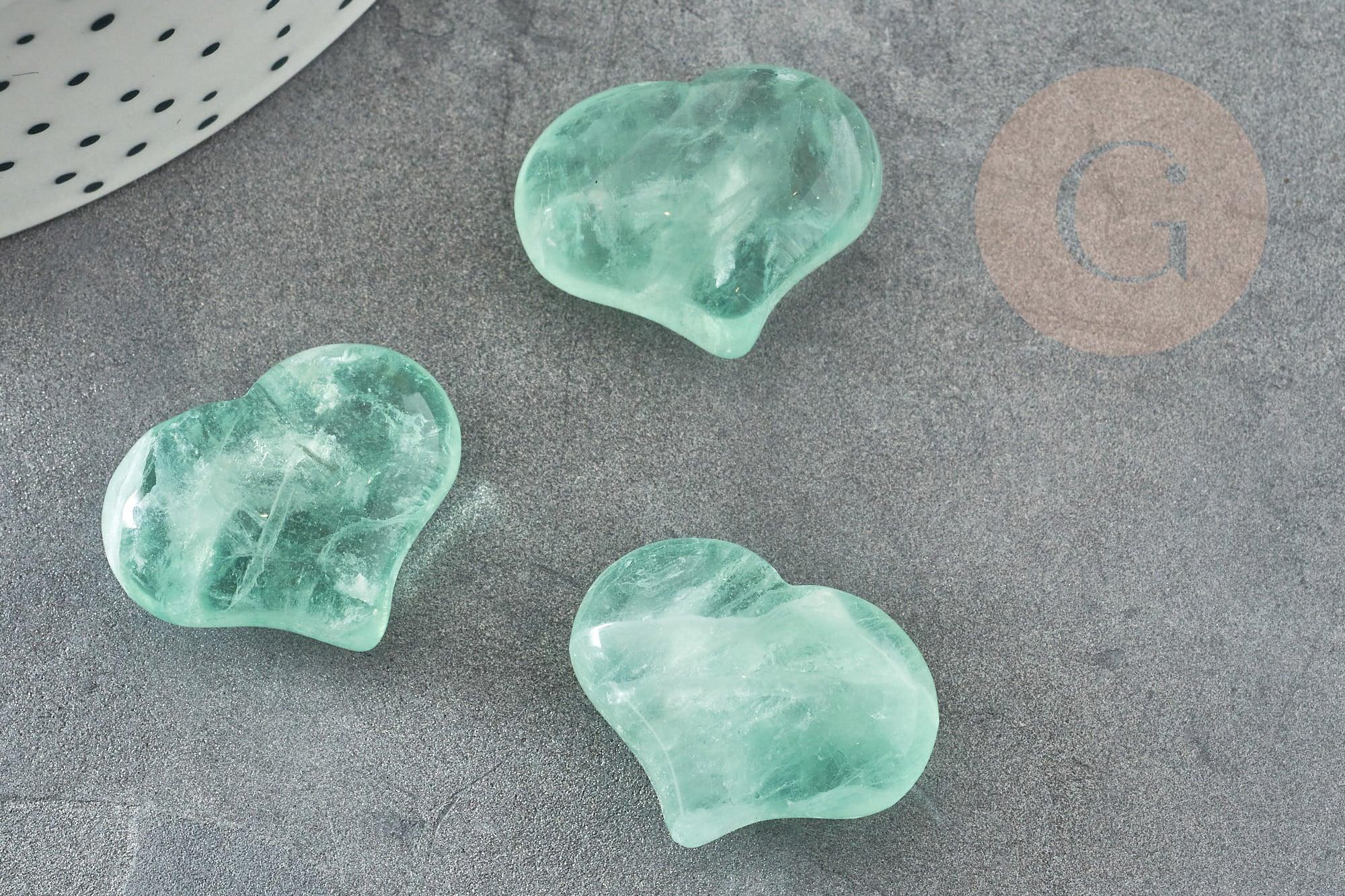 Coeur fluorite naturelle 25mm, fluorite naturel roulé, pierre semi-precieuse, séance lithothérapie, x1 G5701