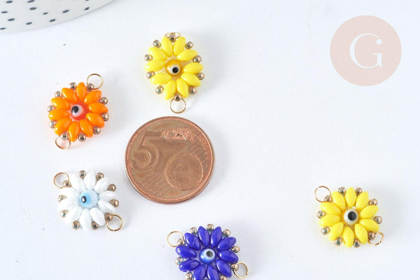 Fall for this handmade glass connector . This one is in Flower shape. In addition, its attachments are gold-plated 304 stainless steel rings . These will allow you to hang them wherever you want!