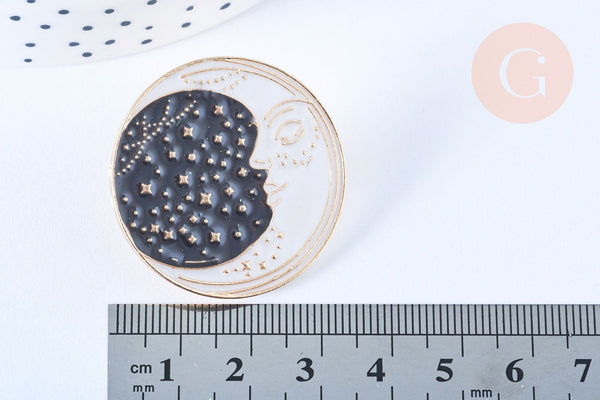 Broche pins croissant de lune mystique émail noir doré émail 35mm, x1 (G6628)