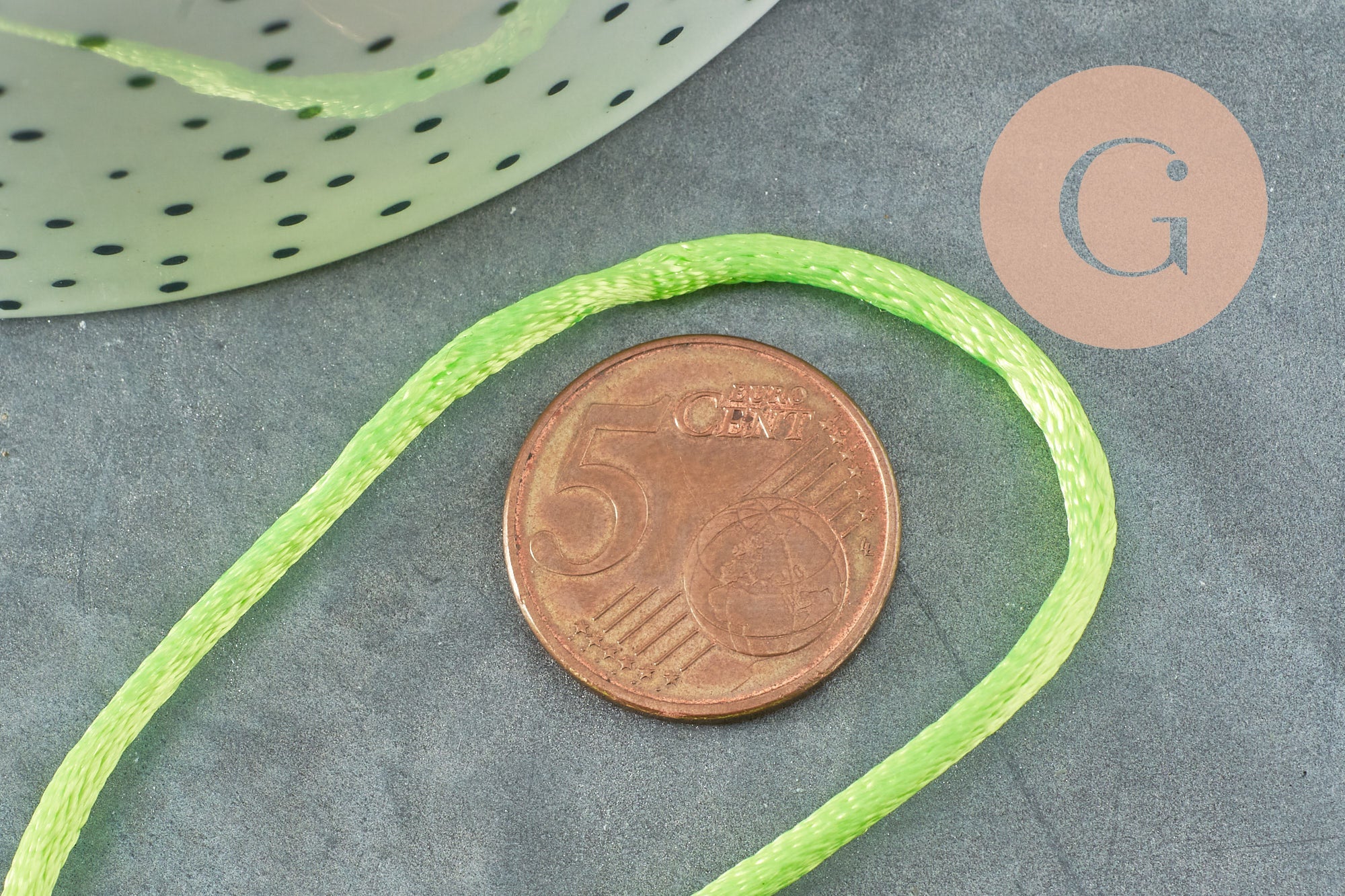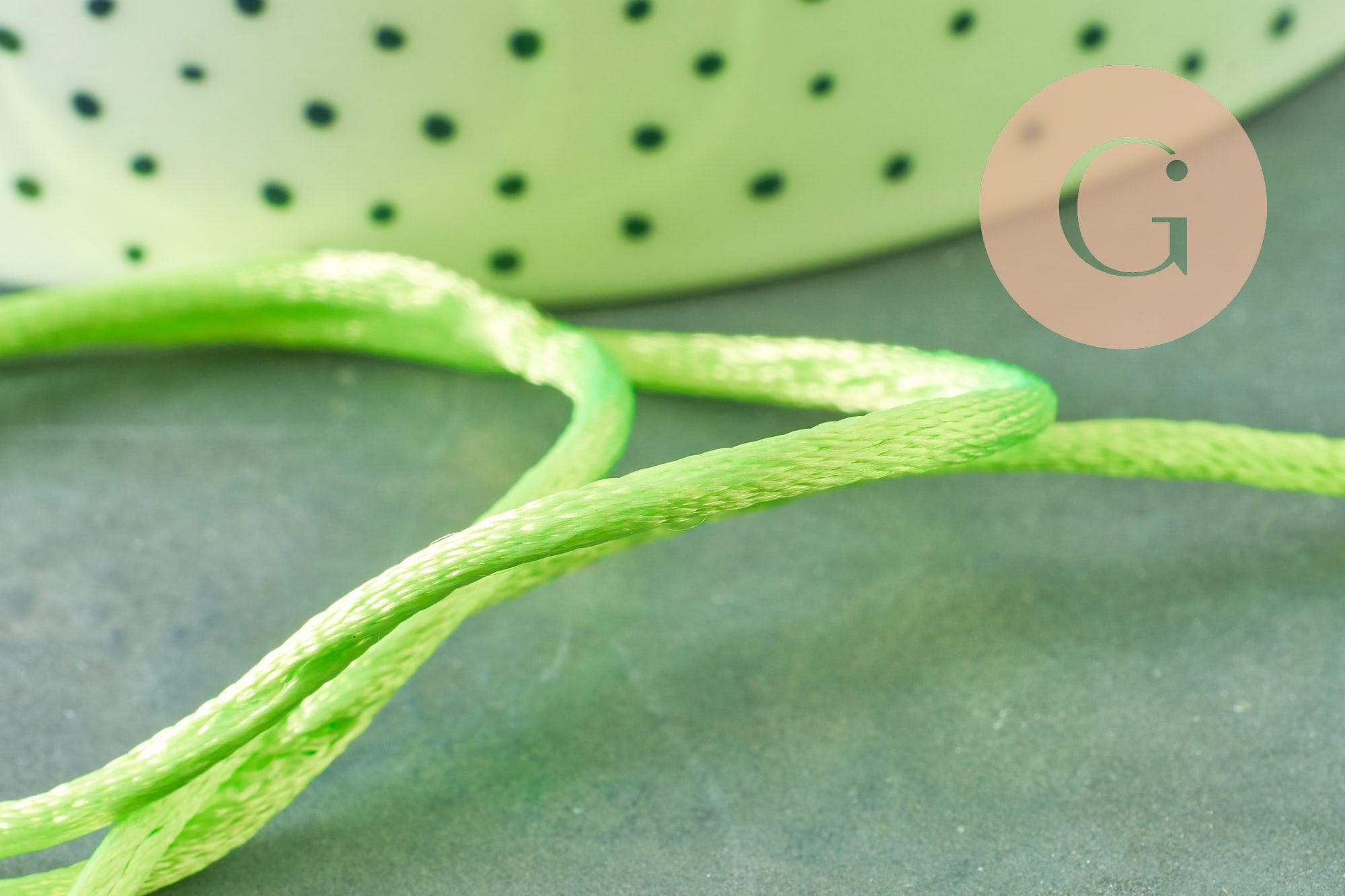 Cordon queue de rat satin jaune fluorescent,cordon brillant, cordon satiné, cordon Bijou, lacet jaune,2mm, x 5mètres G1645