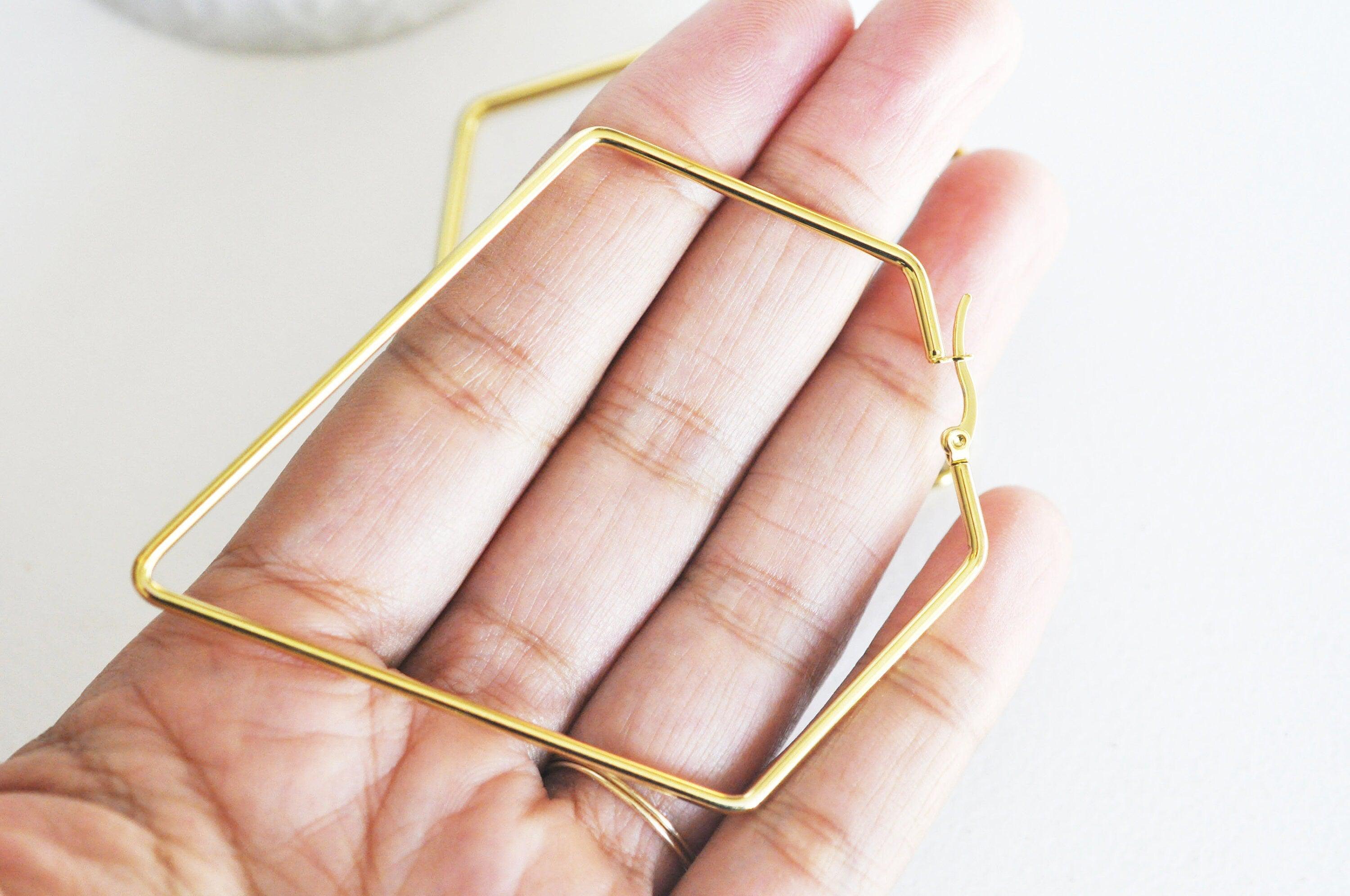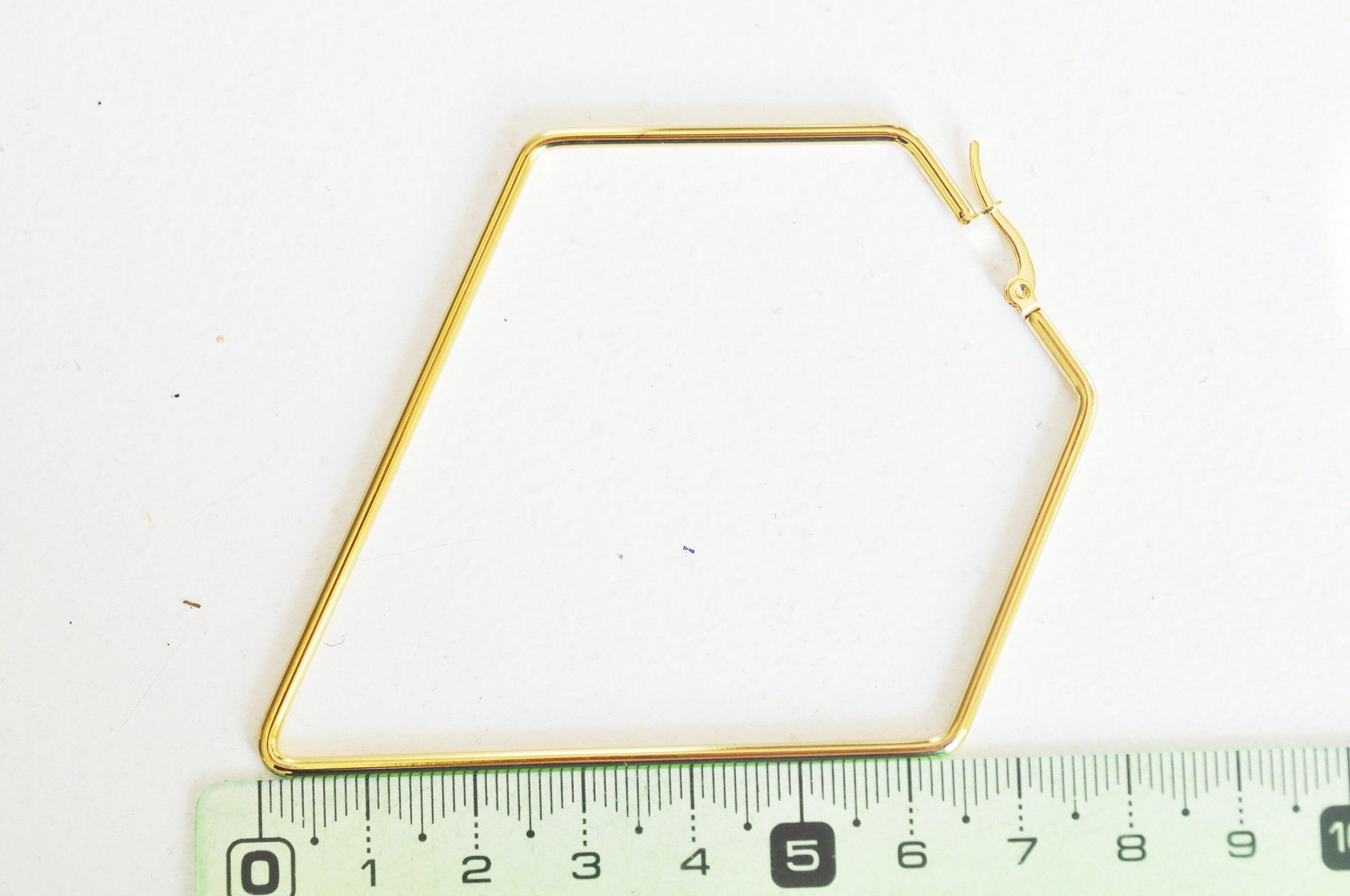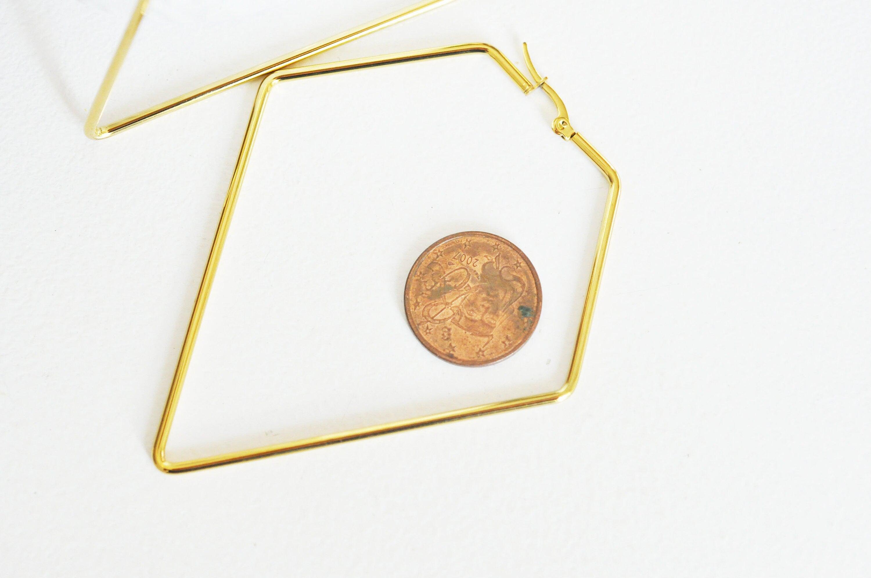 geometric diamond creole in gold-plated steel, gold-plated jewelry, jewelry creation, diamond earrings, nickel-free, pair, steel earrings, 87mm, pair Geometric hoop earrings in gold-plated steel Sold in pairs Jewelry guaranteed to be nickel, lead and cadmium free Quality, long-lasting gilding Sold...