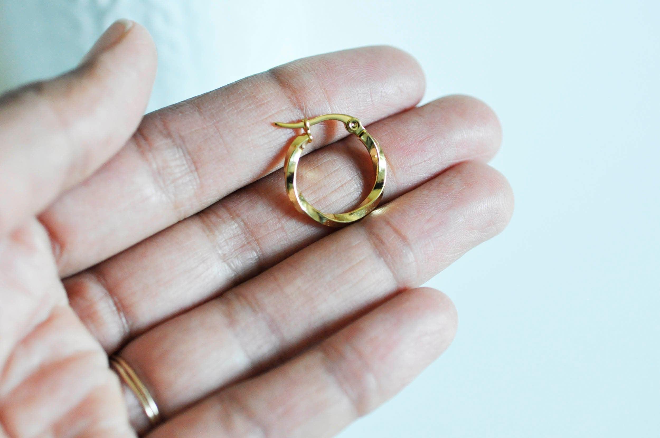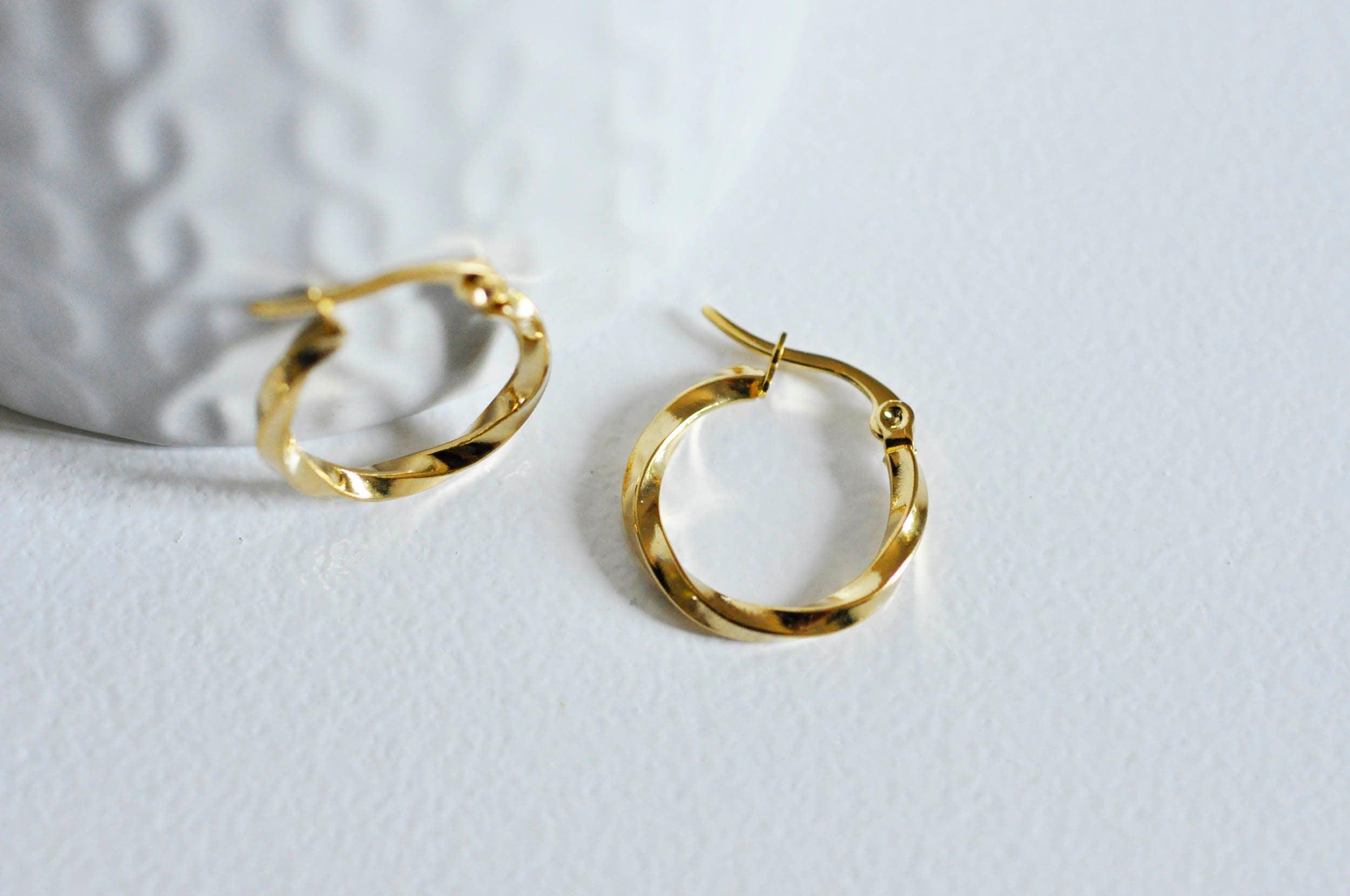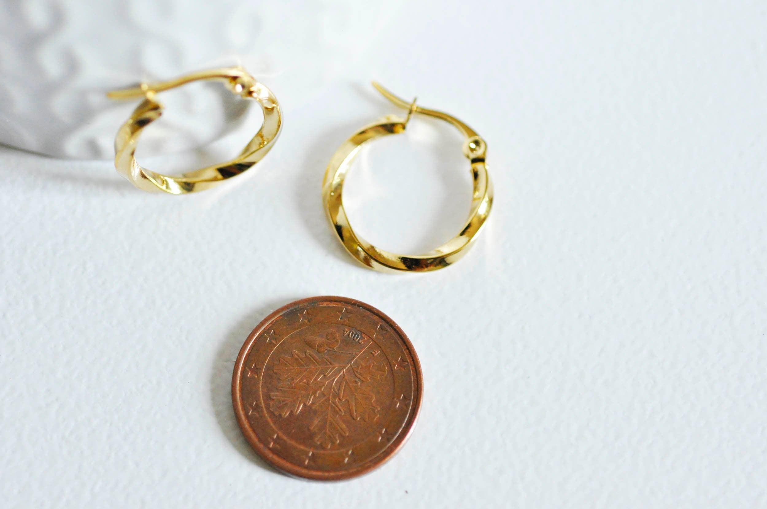 EP twisted hoop earrings 304 stainless steel gold 20mm, x2-G0561