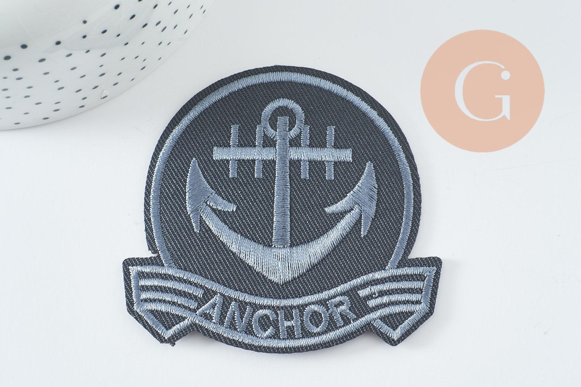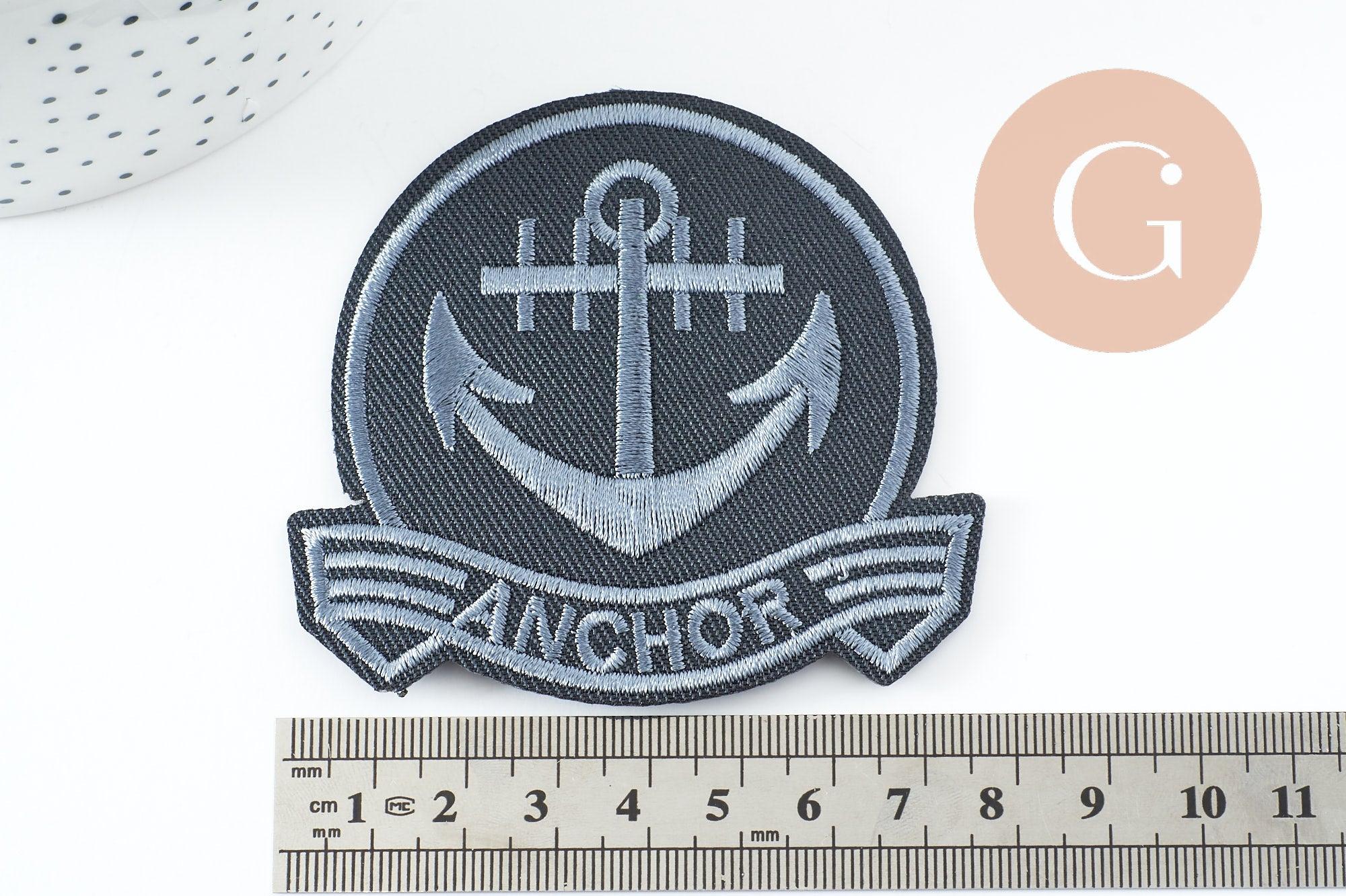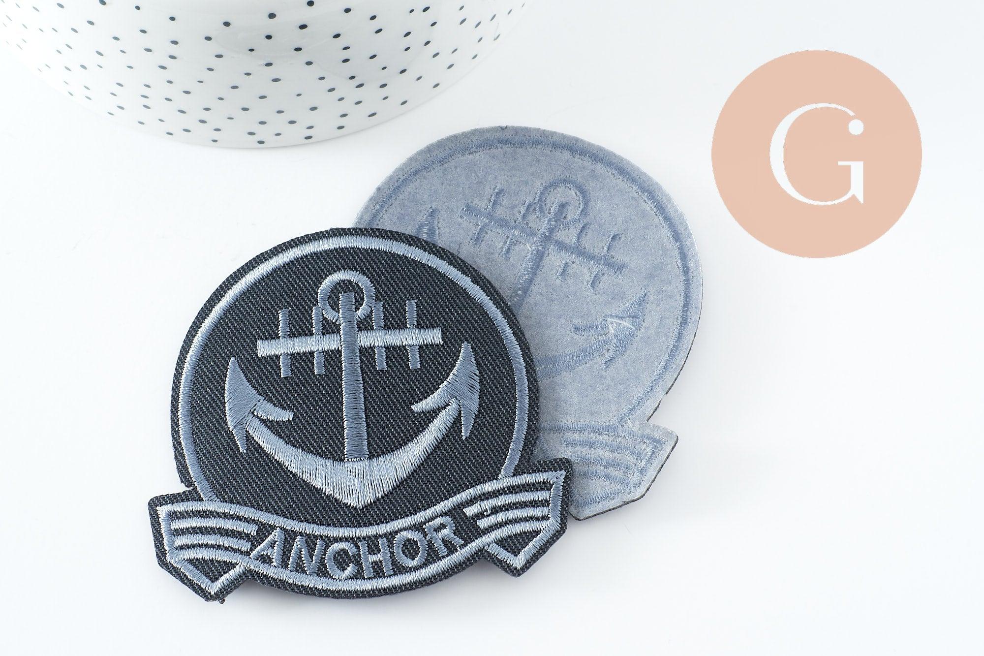 To accessorize your clothes and customize your accessories, adopt this embroidered iron-on marine anchor badge.