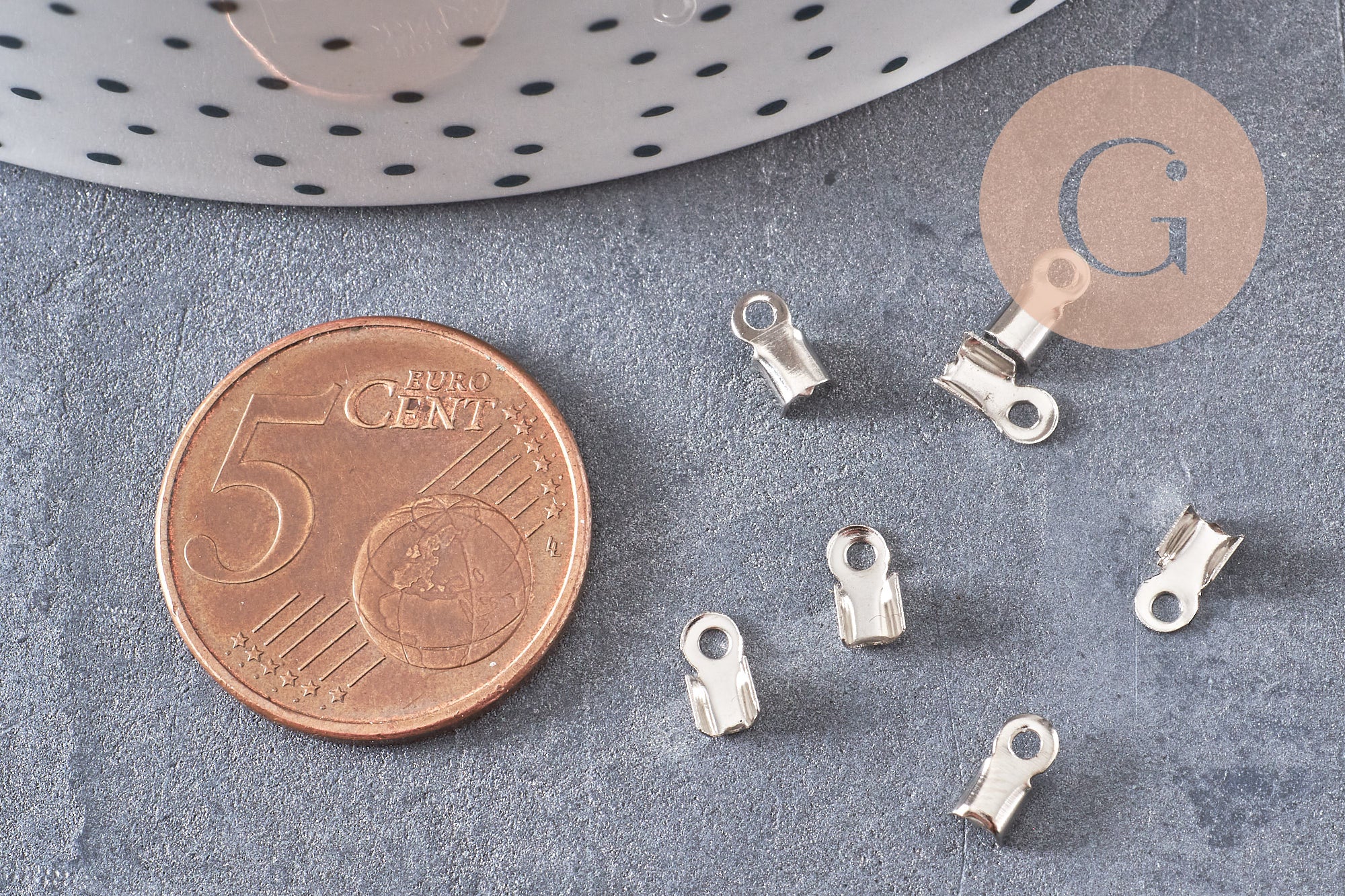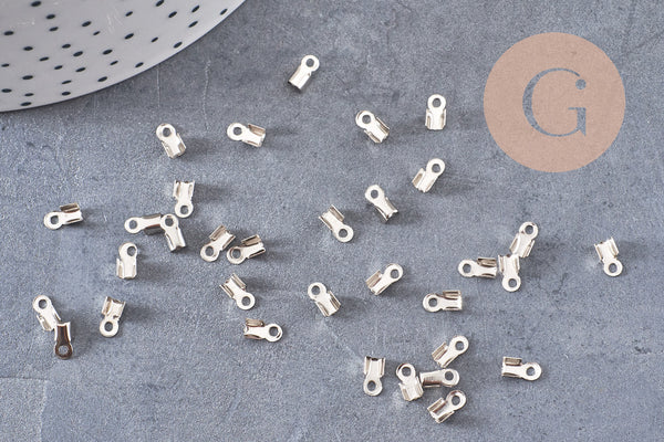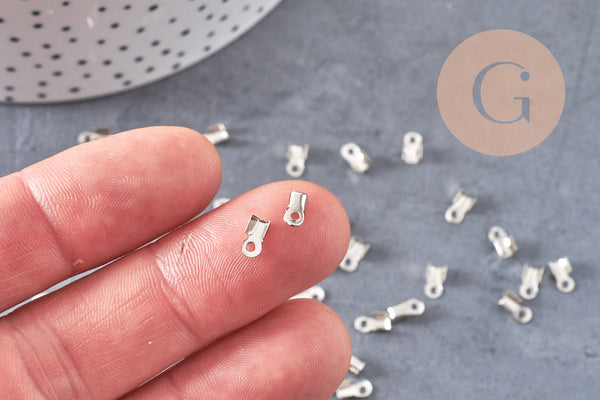 Silver rope ends to pinch, creative supplies, silver supplies, jewelry creation, ribbon finish, chain finish, lot of 100.6mm