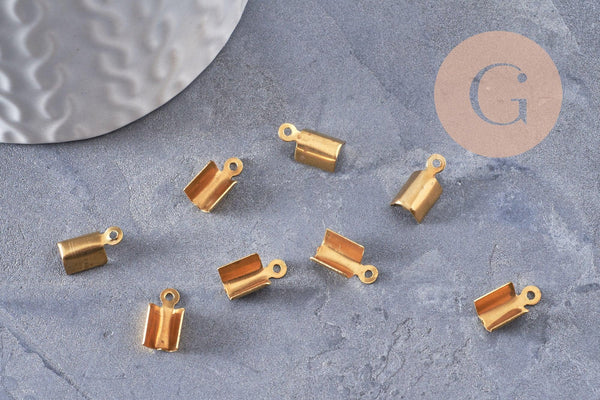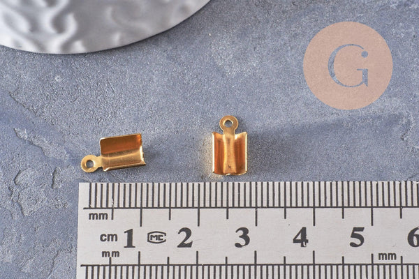 Gold metal rope ends to pinch, creative supplies, golden supplies, jewelry creation, ribbon finish, chain finish, set of 10, 1.1cm
