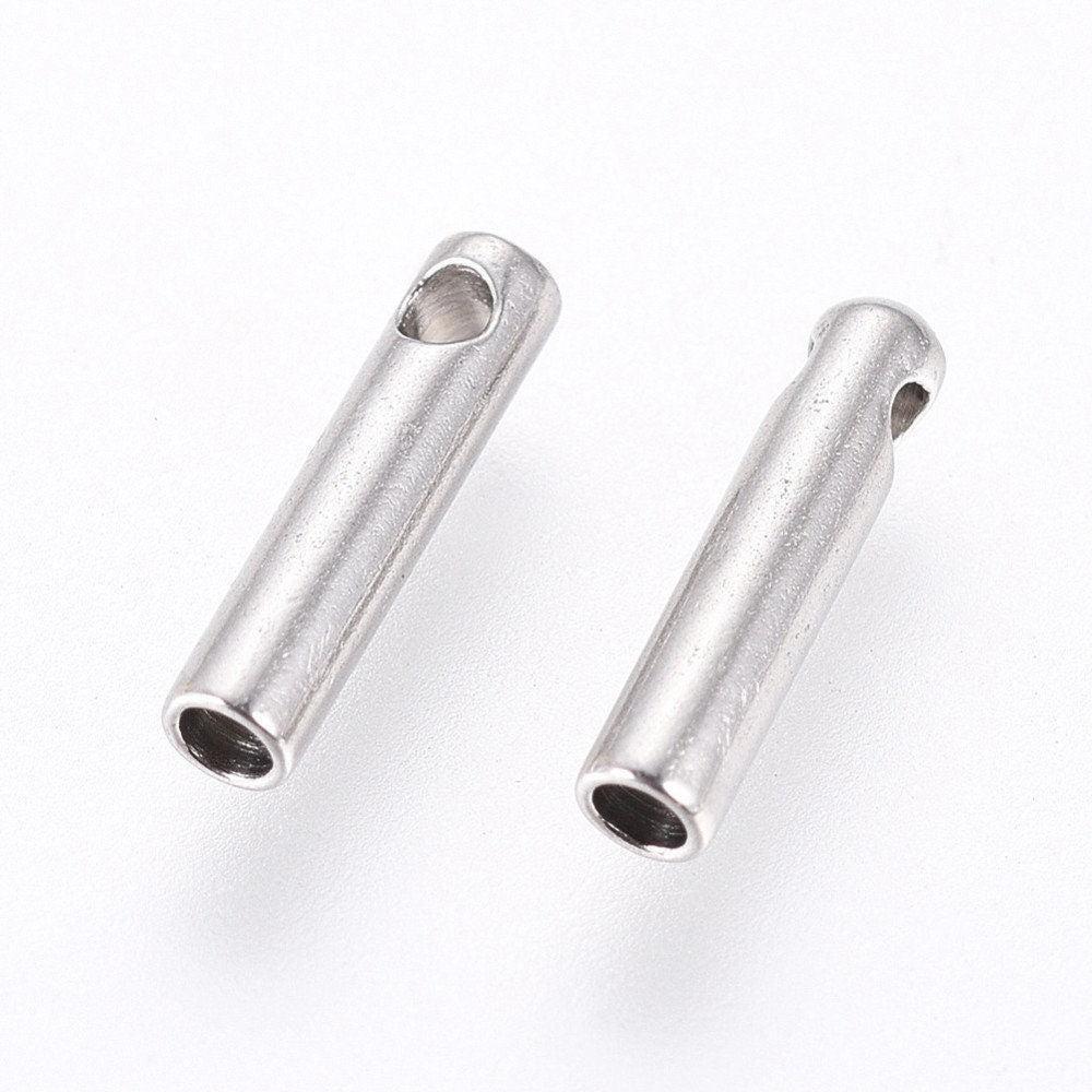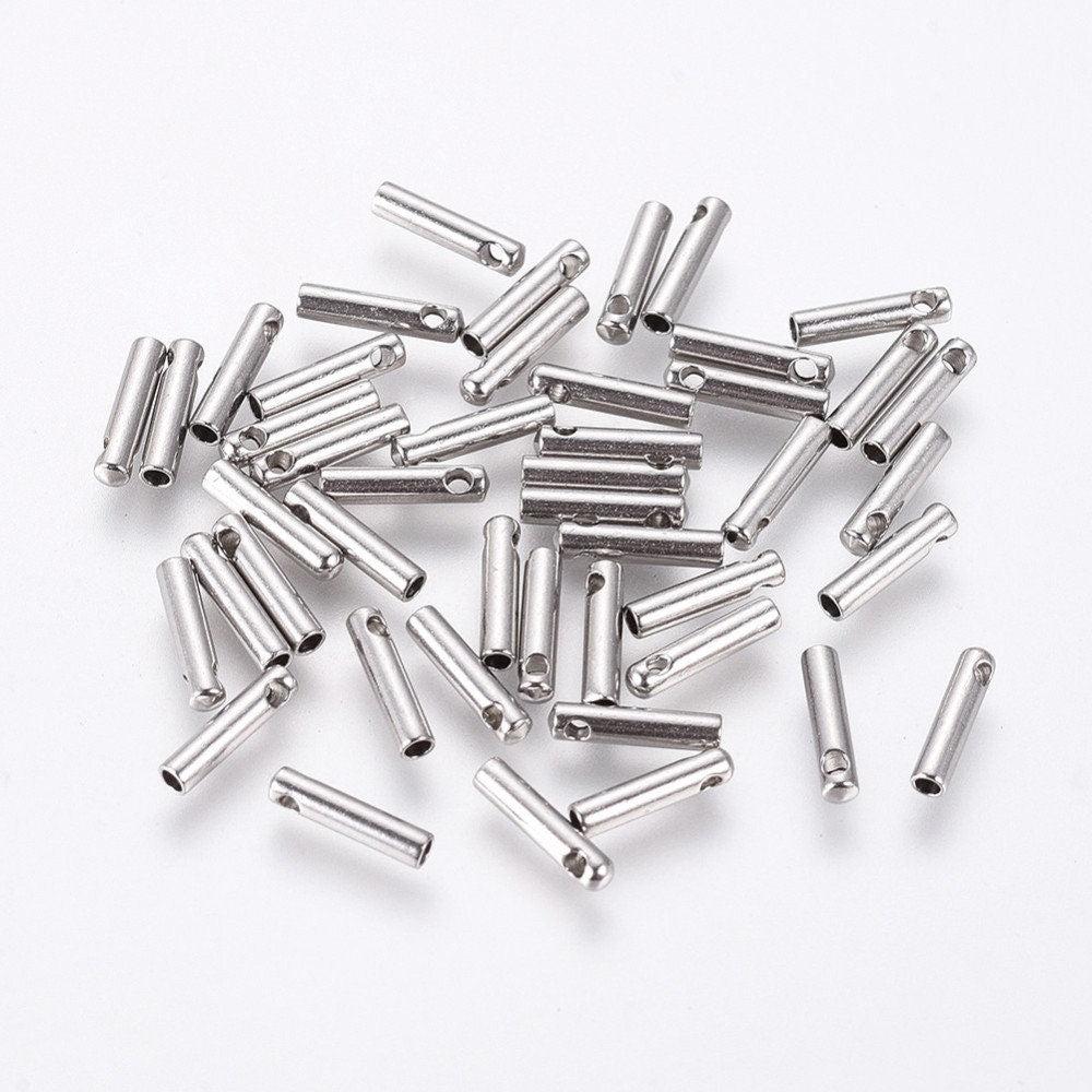 These silver-tone stainless steel cord and chain end caps are perfect for giving your jewelry designs a clean, professional finish. Use them to secure cords, chains, or wires to your necklaces, bracelets, and other accessories.