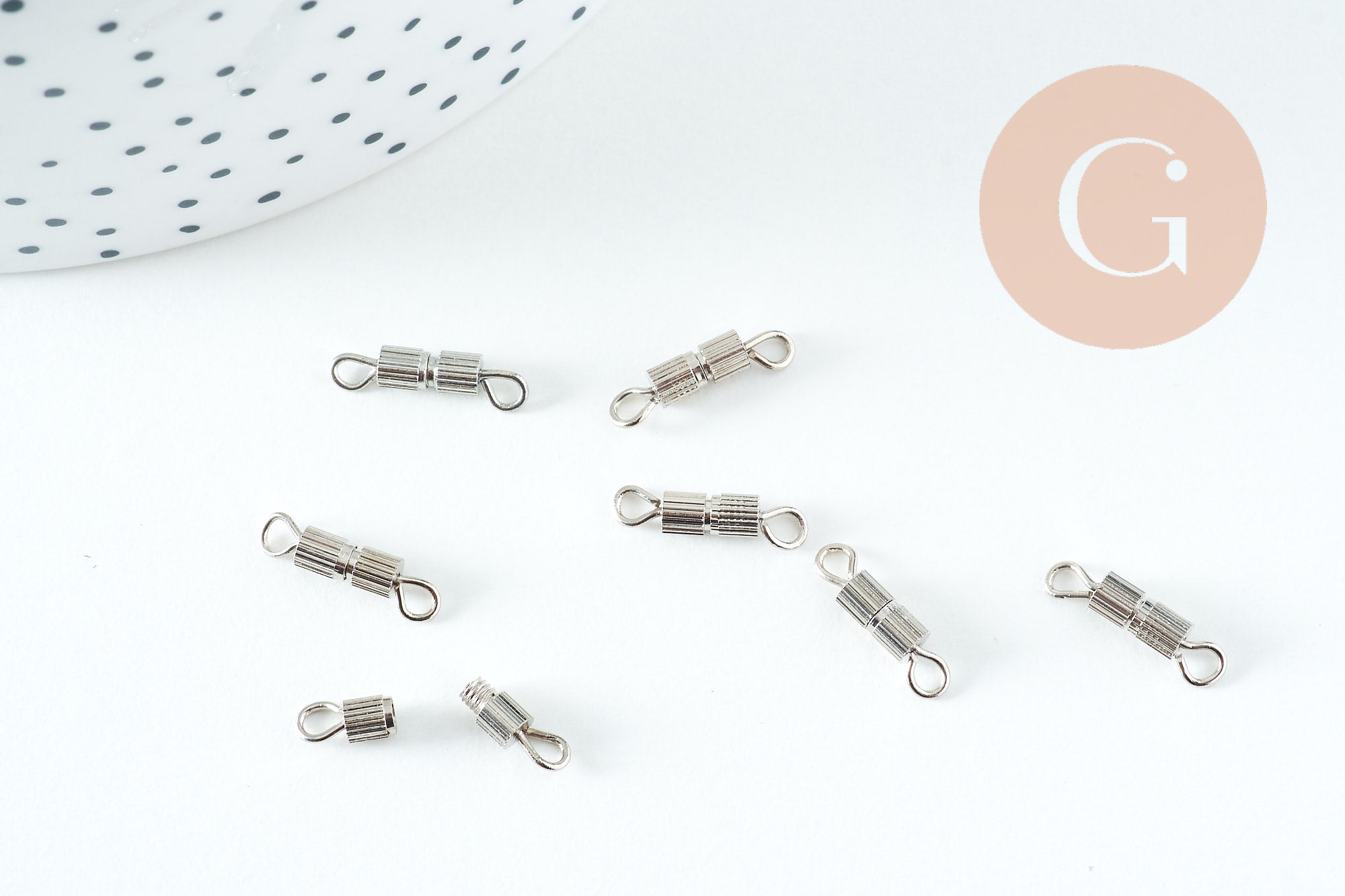 Add a stylish and reliable finish to your jewelry with this set of 10 platinum-finished brass screw clasps . Practical and discreet, these clasps are perfect for securing your necklaces and bracelets without compromising style. Their small size makes them ideal for refined and minimalist creations.