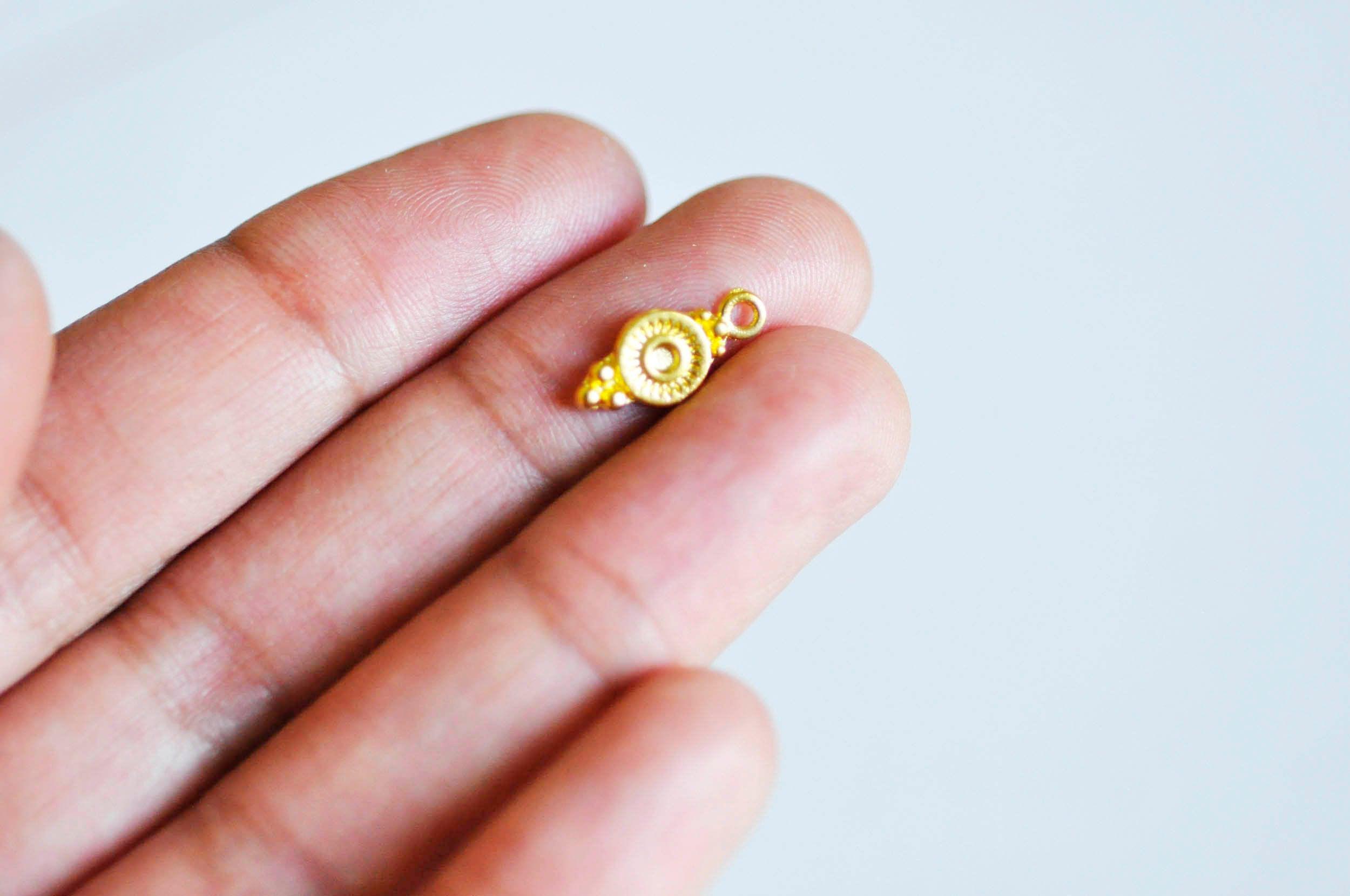 Round golden brass connector pendants, creative supplies, golden connectors, nickel-free, jewelry creation, set of 10, 16mm Fall for this set of 10 gold-plated brass connector pendants You can create magnificent necklaces, bracelets and necklaces using this very trendy pendant. Dimensions...