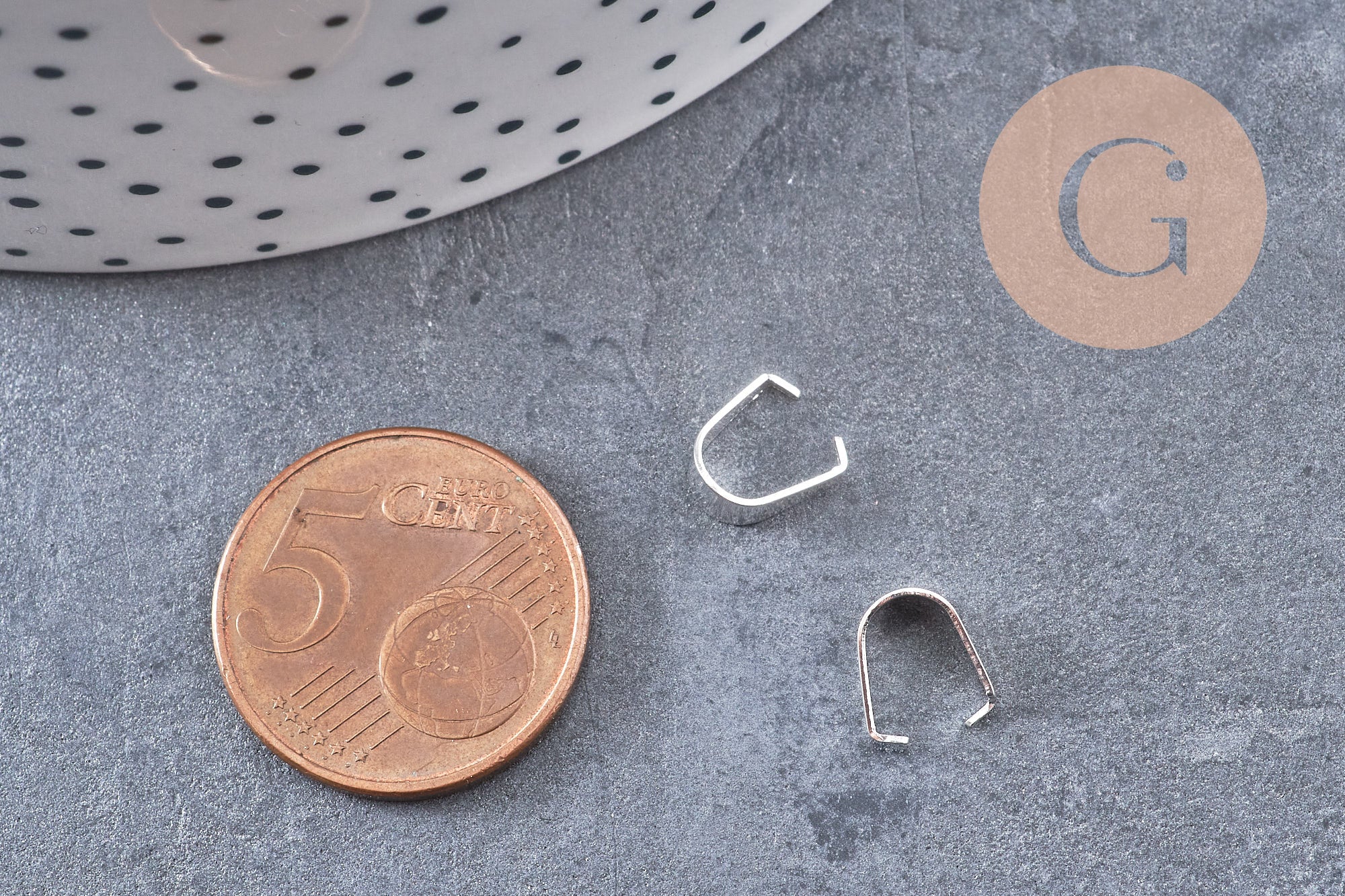 Choose these large silver-plated 201 stainless steel bails , ideal for easily adding a pendant to a chain, cord, or ribbon. Their sturdy yet understated design enhances your creations without adding bulk. Perfect for medium to large pendants, these bails ensure a clean and lasting finish for your DIY jewelry projects.