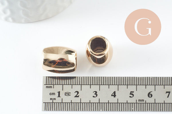 Discover these beautiful golden oval zamac beads with a smooth finish and a large hole, ideal for bringing your DIY jewelry creations to life. With these beads, you can create unique and original costume jewelry that will not go unnoticed.